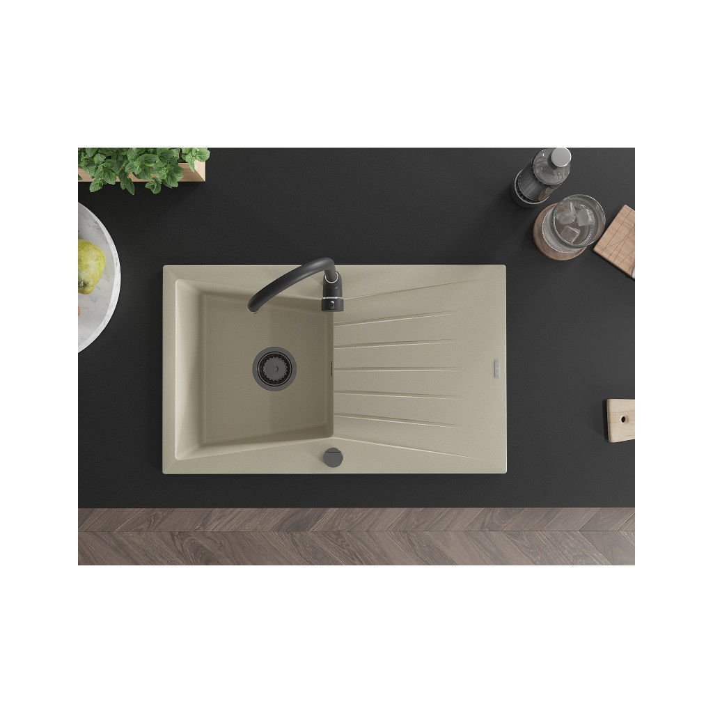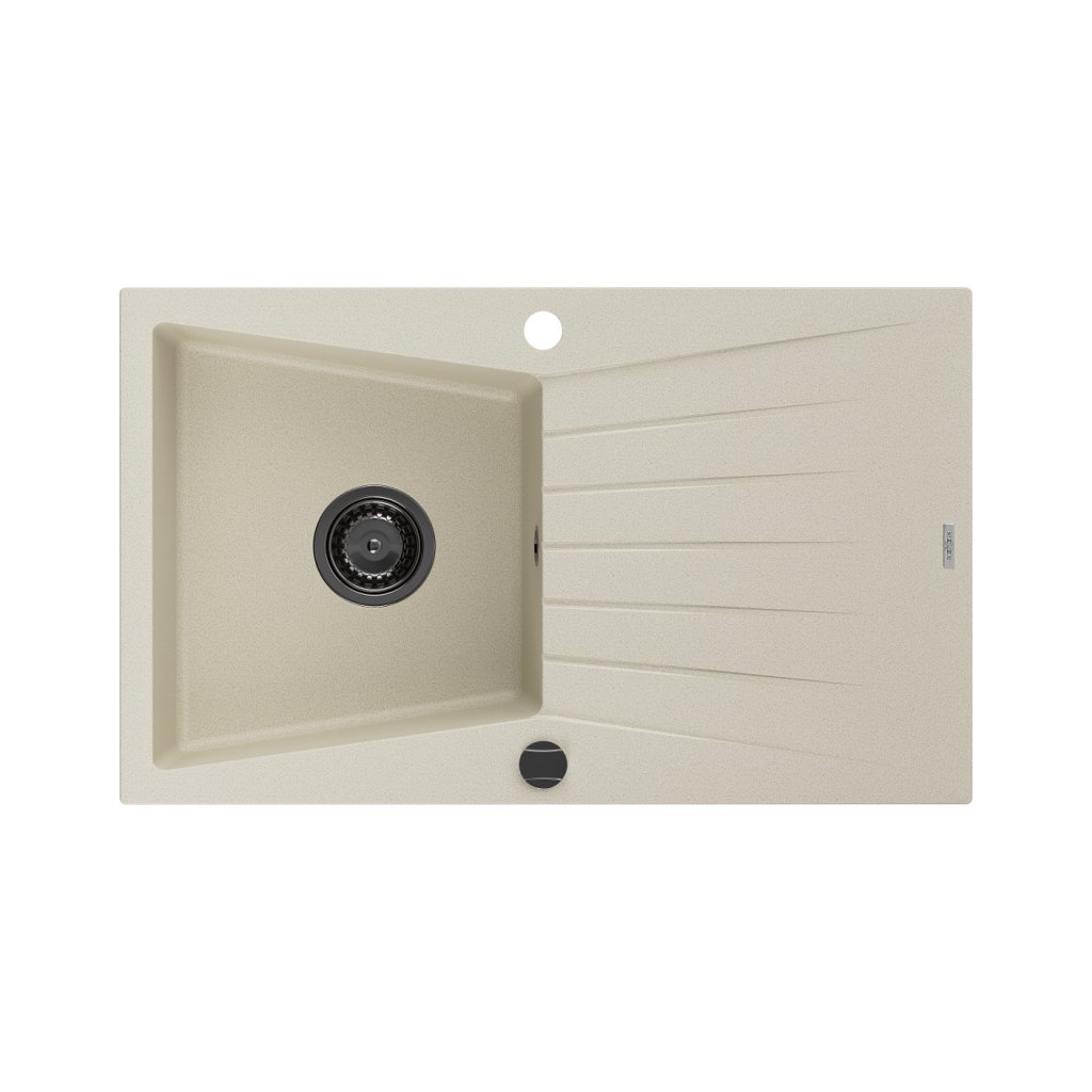 Mexen Cesar, granitový dřez 775x470x190 mm, 1-komorový, béžová s černým sifonem, 6514771010-69-B