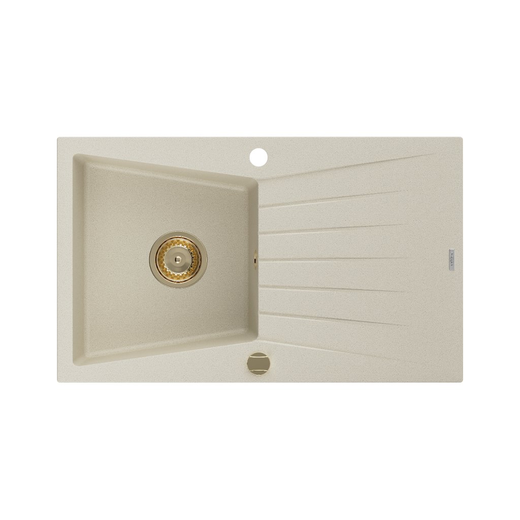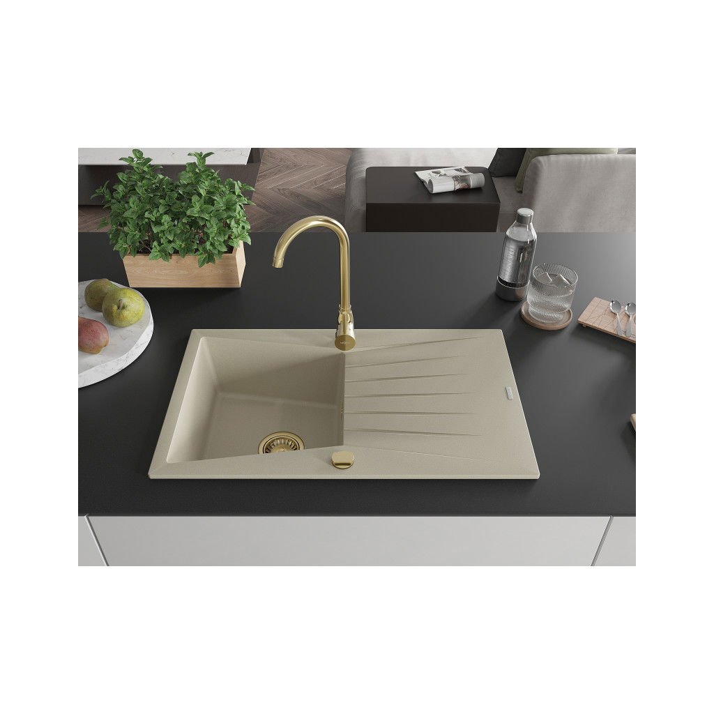 Mexen Cesar, granitový dřez 775x470x190 mm, 1-komorový, béžová se zlatým sifonem, 6514771010-69-G