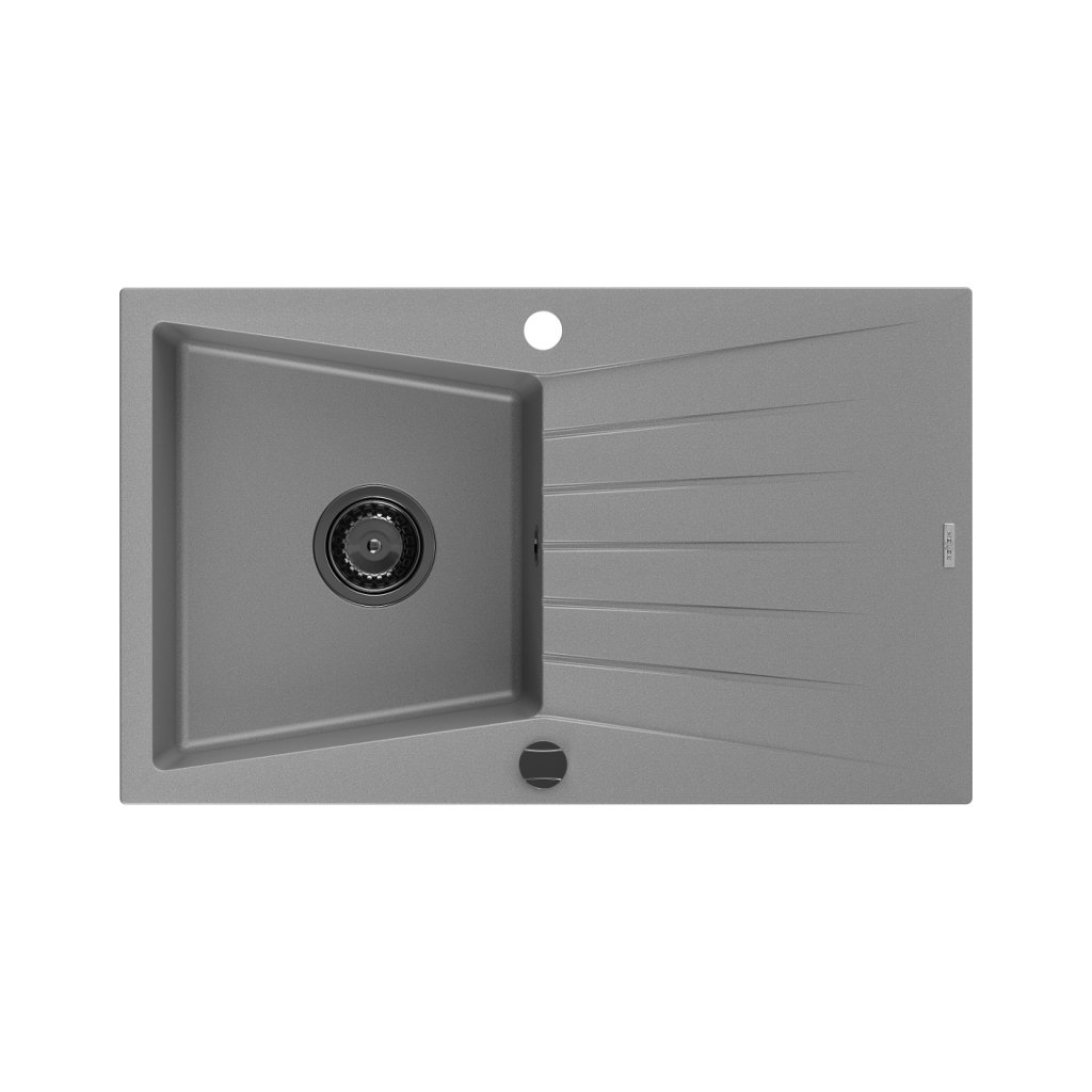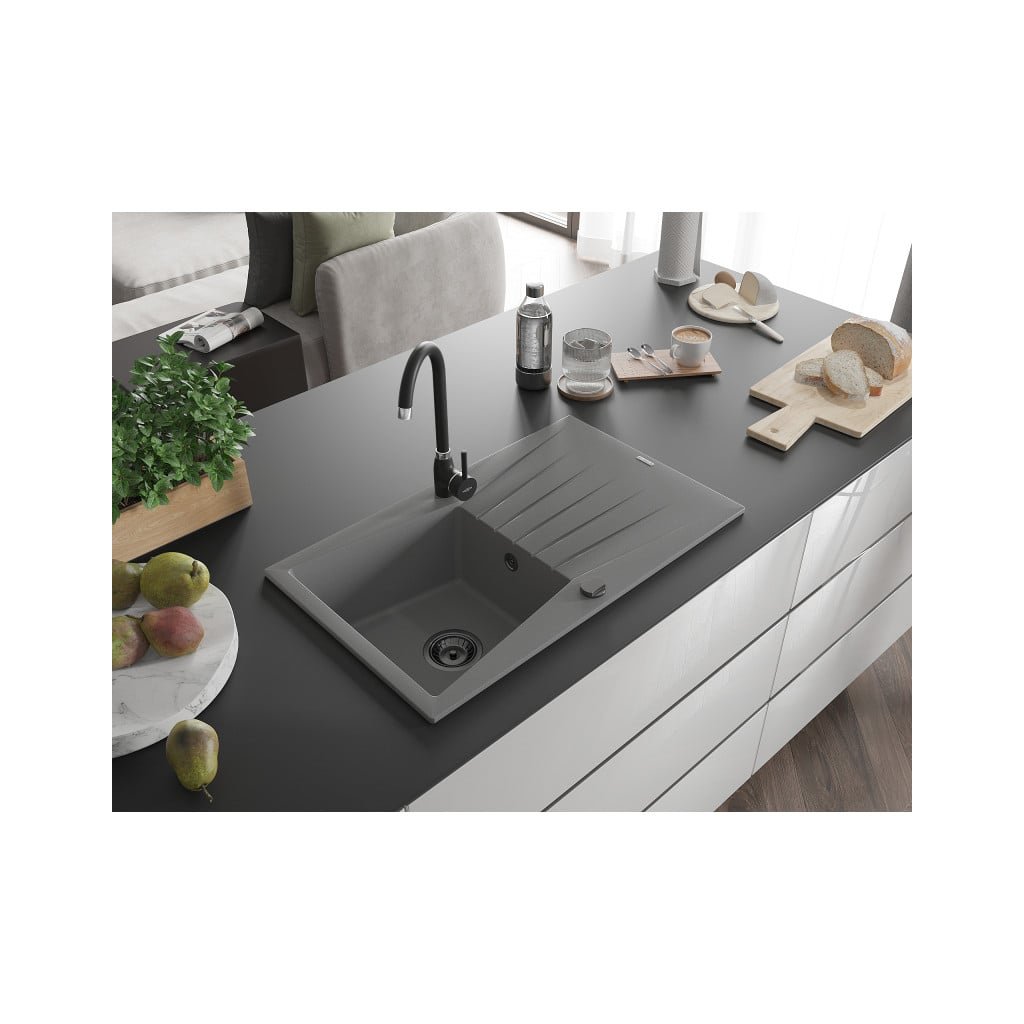 Mexen Cesar, granitový dřez 775x470x190 mm, 1-komorový, šedá s černým sifonem, 6514771010-71-B
