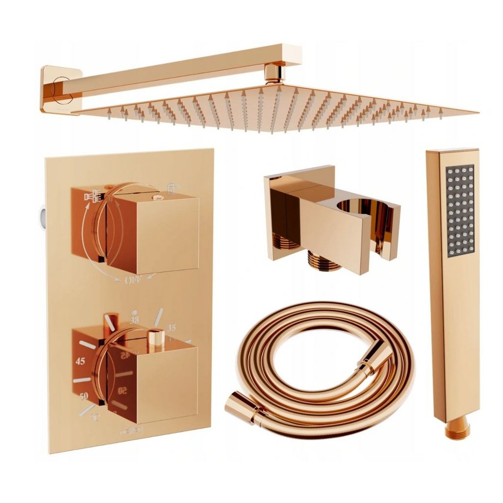 Mexen CUBE - 2-výstupová podomítková sprchová sada 6v1, růžové-zlato, 5907709105784