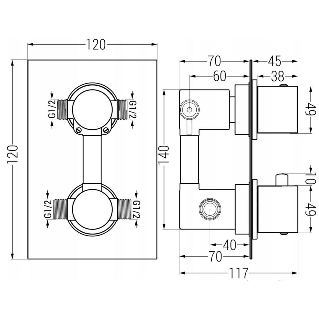 1. Termostatická baterie, podomítková baterie s přepínačem (2-výstupové těleso)