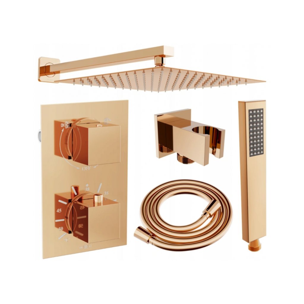Mexen Cube DR02 podomítkový sprchový set s dešťovou sprchou 30x30 cm (6v1), růžová zlatá, 77502DR0230-60