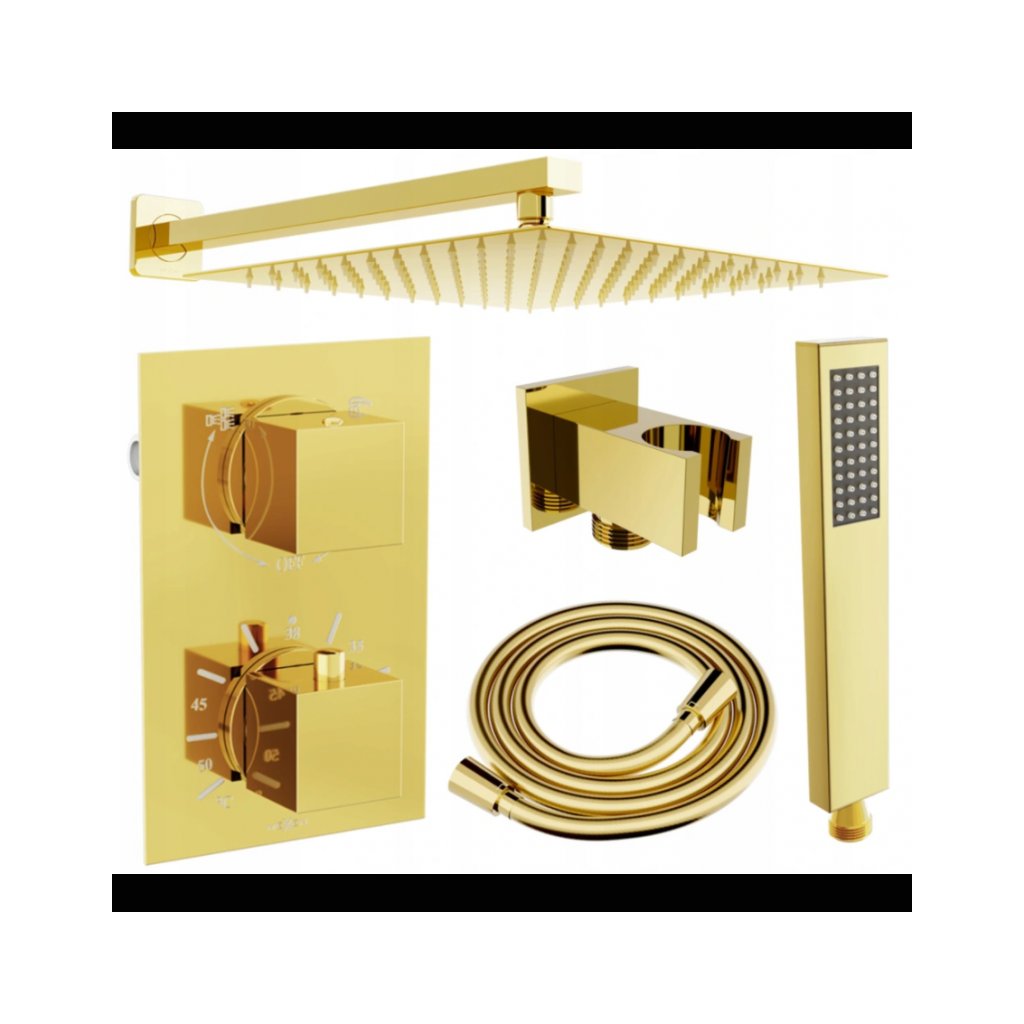 Mexen Cube DR02 podomítkový sprchový set s dešťovou sprchou 30x30 cm (6v1), zlatá, 77502DR0230-50