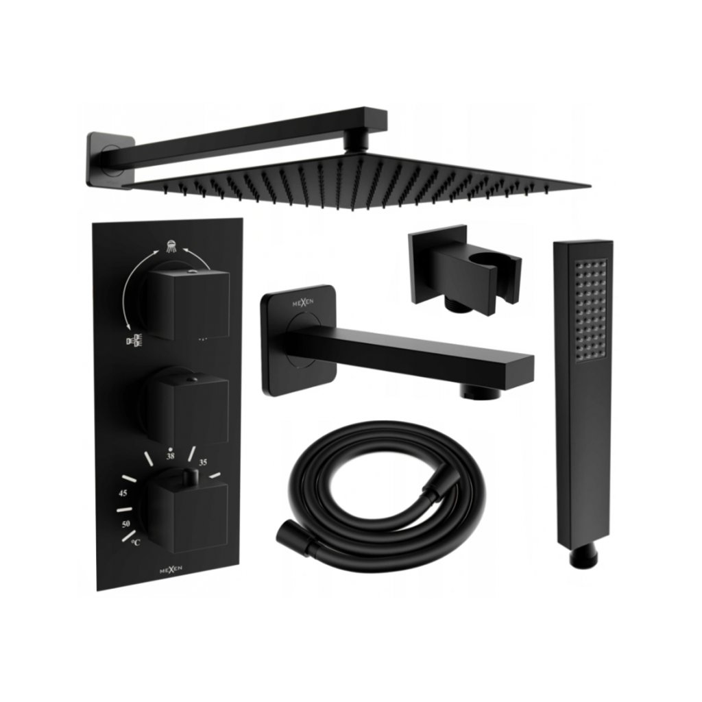 Mexen Cube DR02 podomítkový vanový a sprchový set s hlavovou sprchou 25x25 cm (7v1), černá, 77503DR0225-70