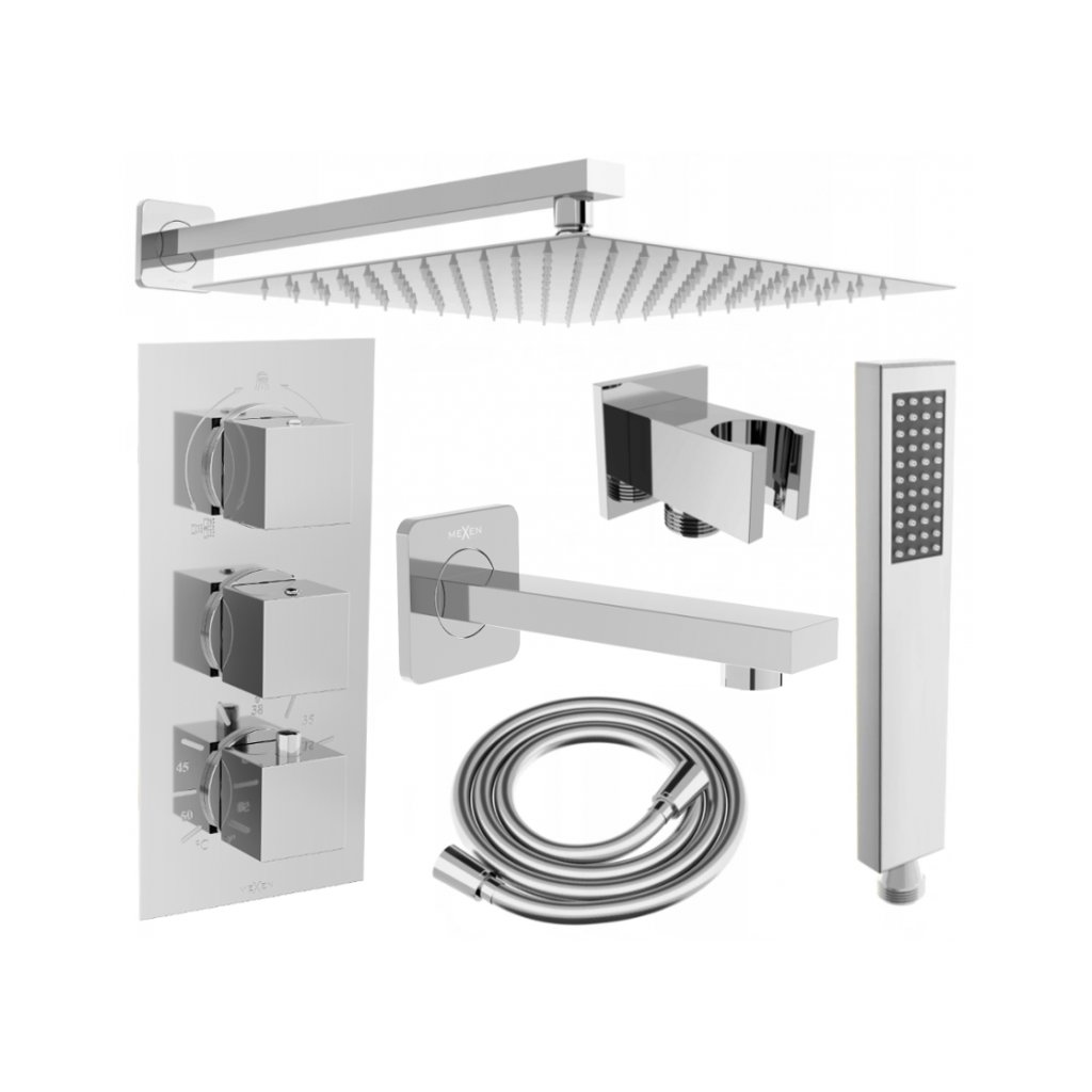Mexen Cube DR02 podomítkový vanový a sprchový set s hlavovou sprchou 25x25 cm (7v1), chromová, 77503DR0225-00