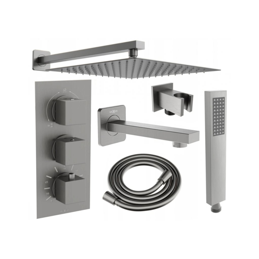 Mexen Cube DR02 podomítkový vanový a sprchový set s hlavovou sprchou 30x30 cm (7v1), grafitová, 77503DR0230-66