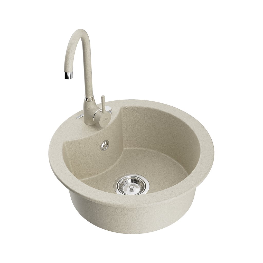 Mexen Diego, 1-komorový granitový dřez 49x49 cm a kuchyňská baterie Telma, béžová, 6512-69-670200-69