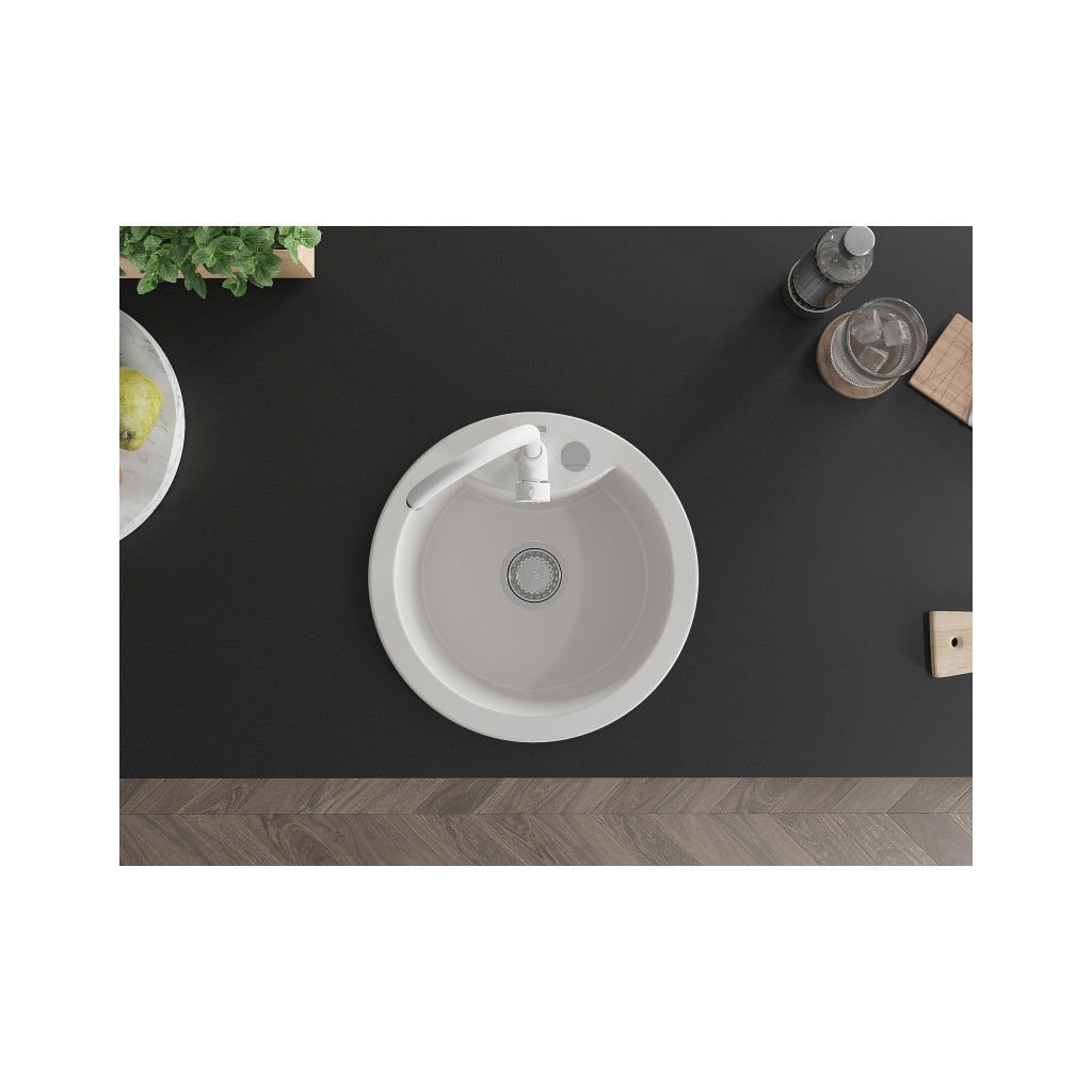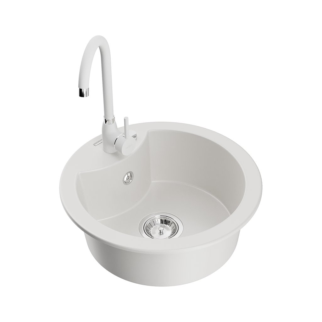 Mexen Diego, 1-komorový granitový dřez 49x49 cm a kuchyňská baterie Telma, bílá, 6512-20-670200-20