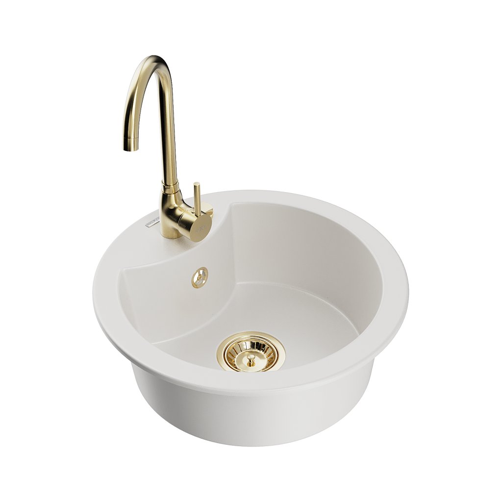 Mexen Diego, 1-komorový granitový dřez 49x49 cm a kuchyňská baterie Telma, bílá, 6512-20-670200-50