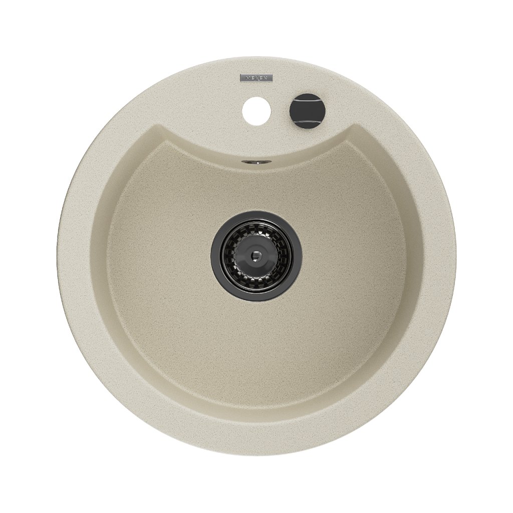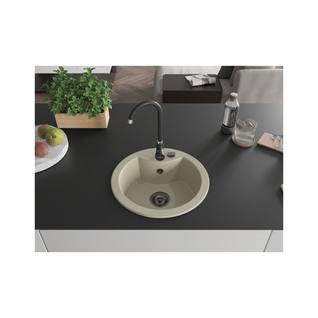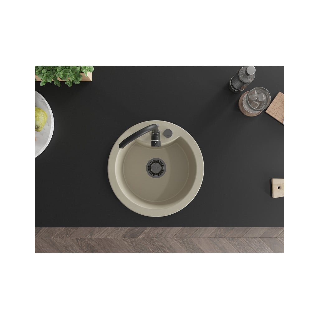 Mexen Diego, granitový dřez 488x488x167 mm, 1-komorový, béžová s černým sifonem, 6512481000-69-B