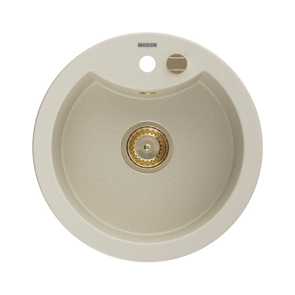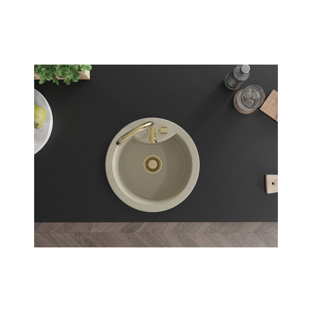Mexen Diego, granitový dřez 488x488x167 mm, 1-komorový, béžová se zlatým sifonem, 6512481000-69-G