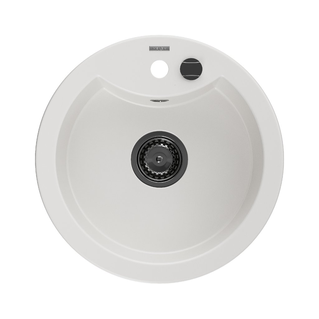 Mexen Diego, granitový dřez 488x488x167 mm, 1-komorový, bílá s černým sifonem, 6512481000-20-B
