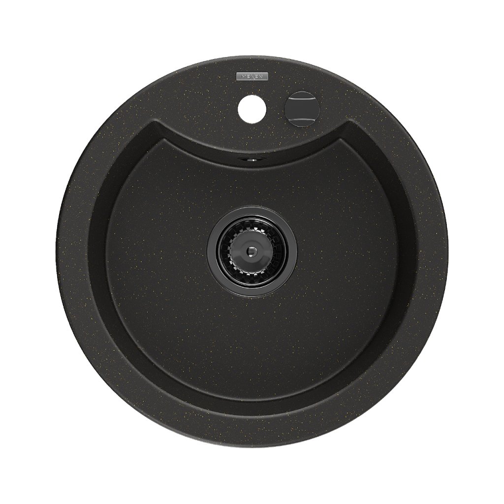 Mexen Diego, granitový dřez 488x488x167 mm, 1-komorový, černá-zlatá metalíza s černým sifonem, 6512481000-75-B