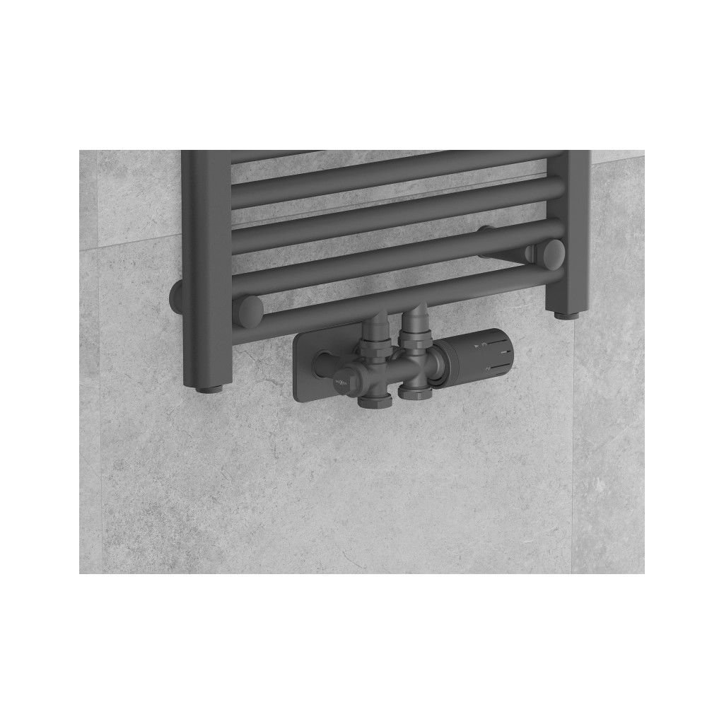 Mexen Duplex G05, úhlová/přímá termostatická souprava s hranatou krytkou S, DN50, antracitová matná, W908-958-910-66