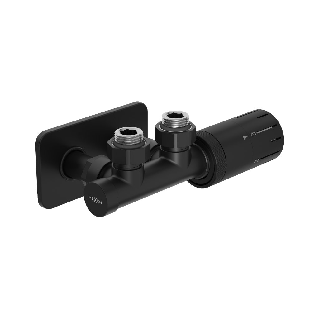 Mexen Duplex G05, úhlová termostatická souprava s hranatou krytkou S, DN50, černá matná, W907-958-910-70