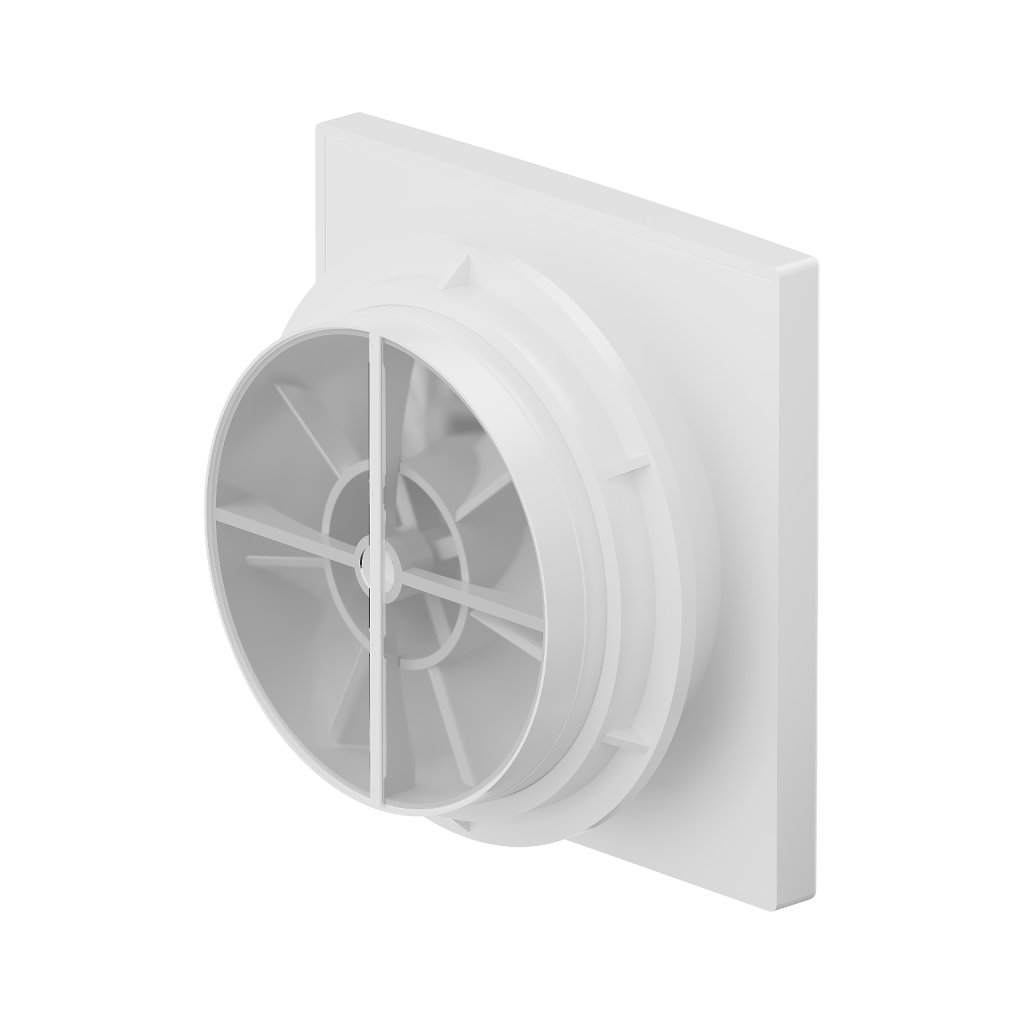 - Zpětná klapka , která zabraňuje zpětnému proudění vzduchu z větracích potrubí do místnosti