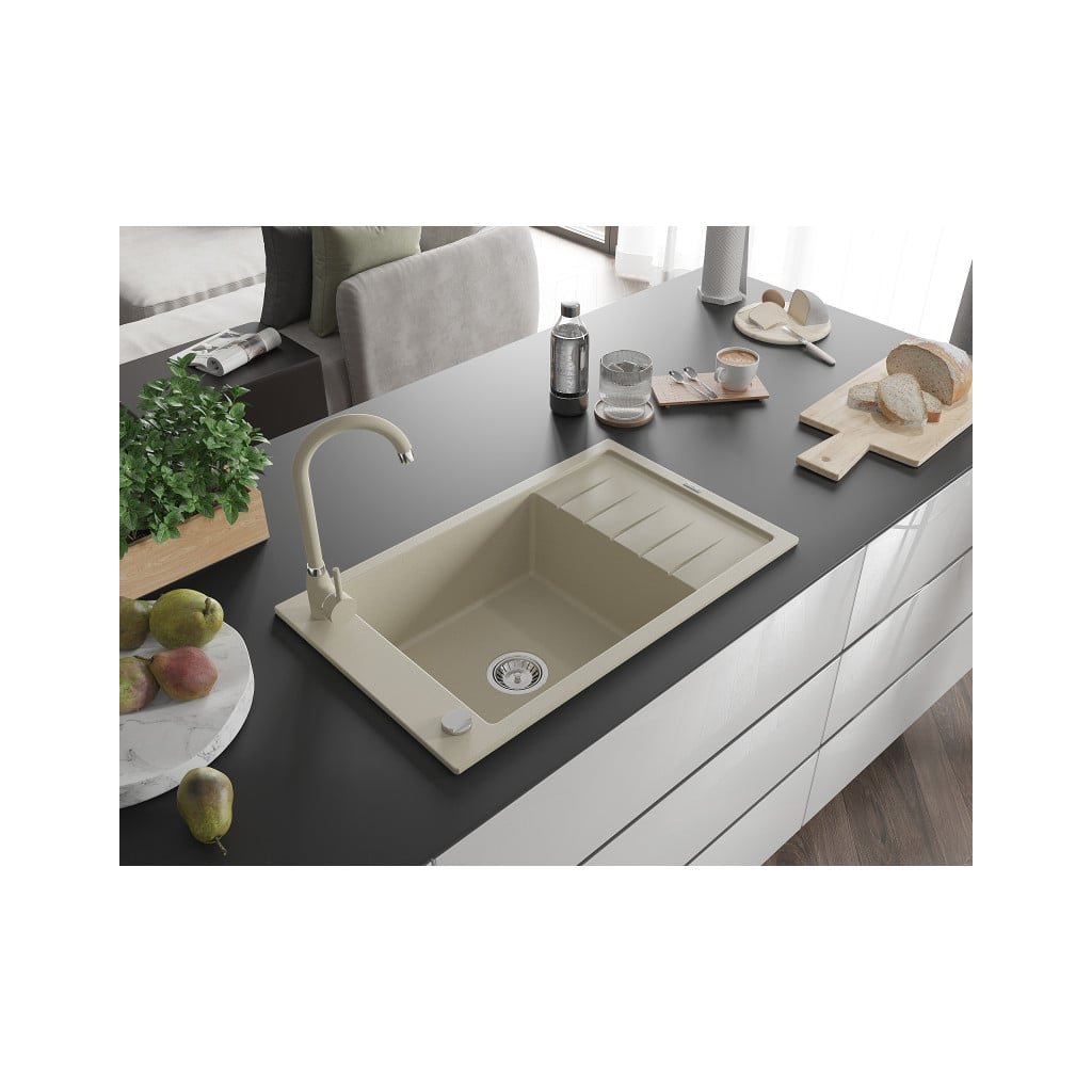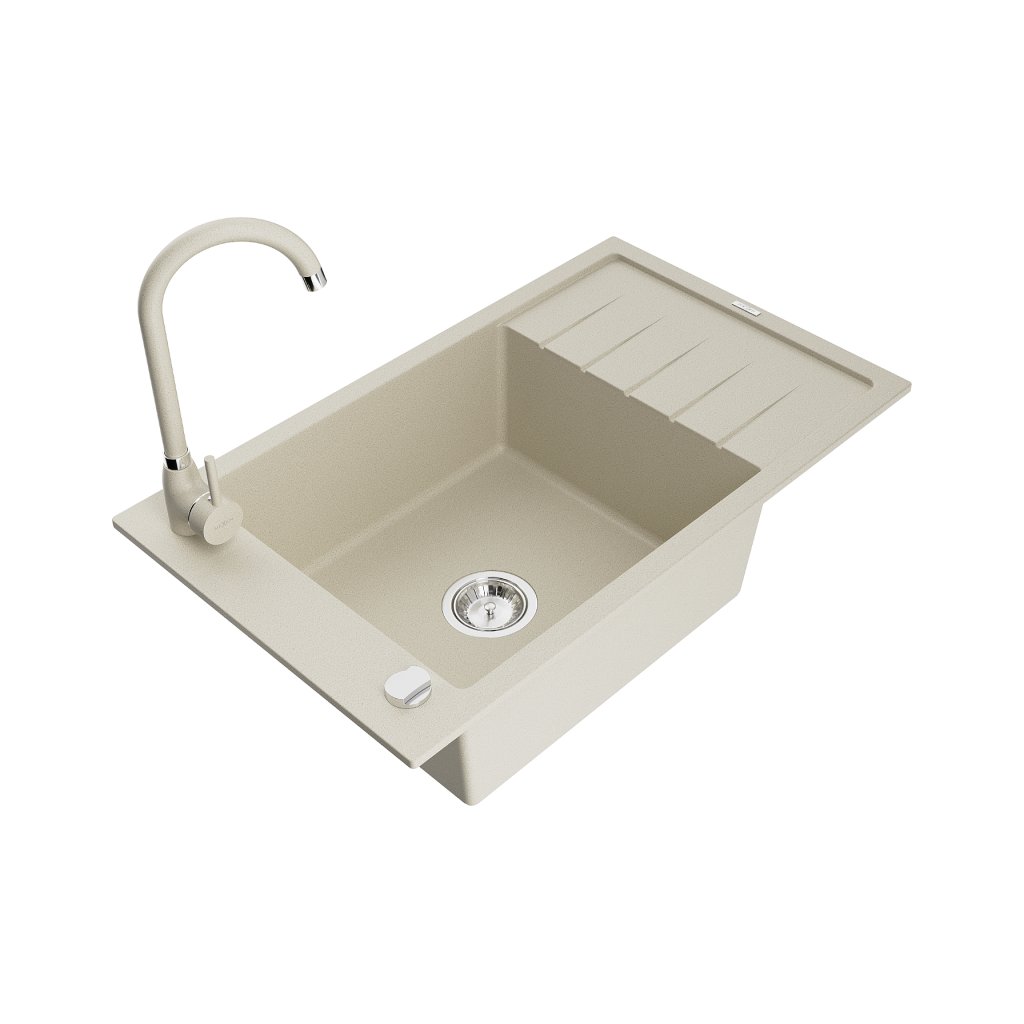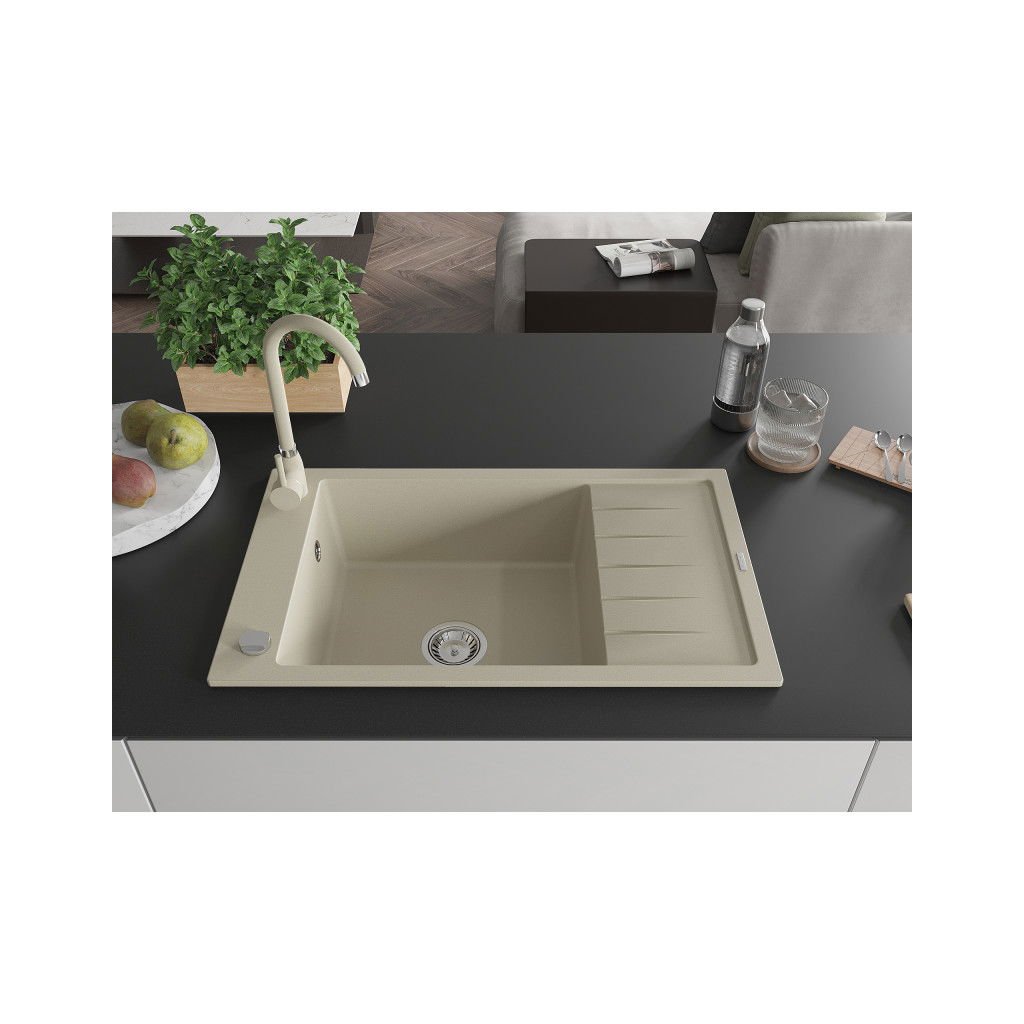 Mexen Elias, 1-komorový granitový dřez s odkapávačem 80x48 cm a kuchyňskou baterií Telma, béžová, 6511-69-670200-69