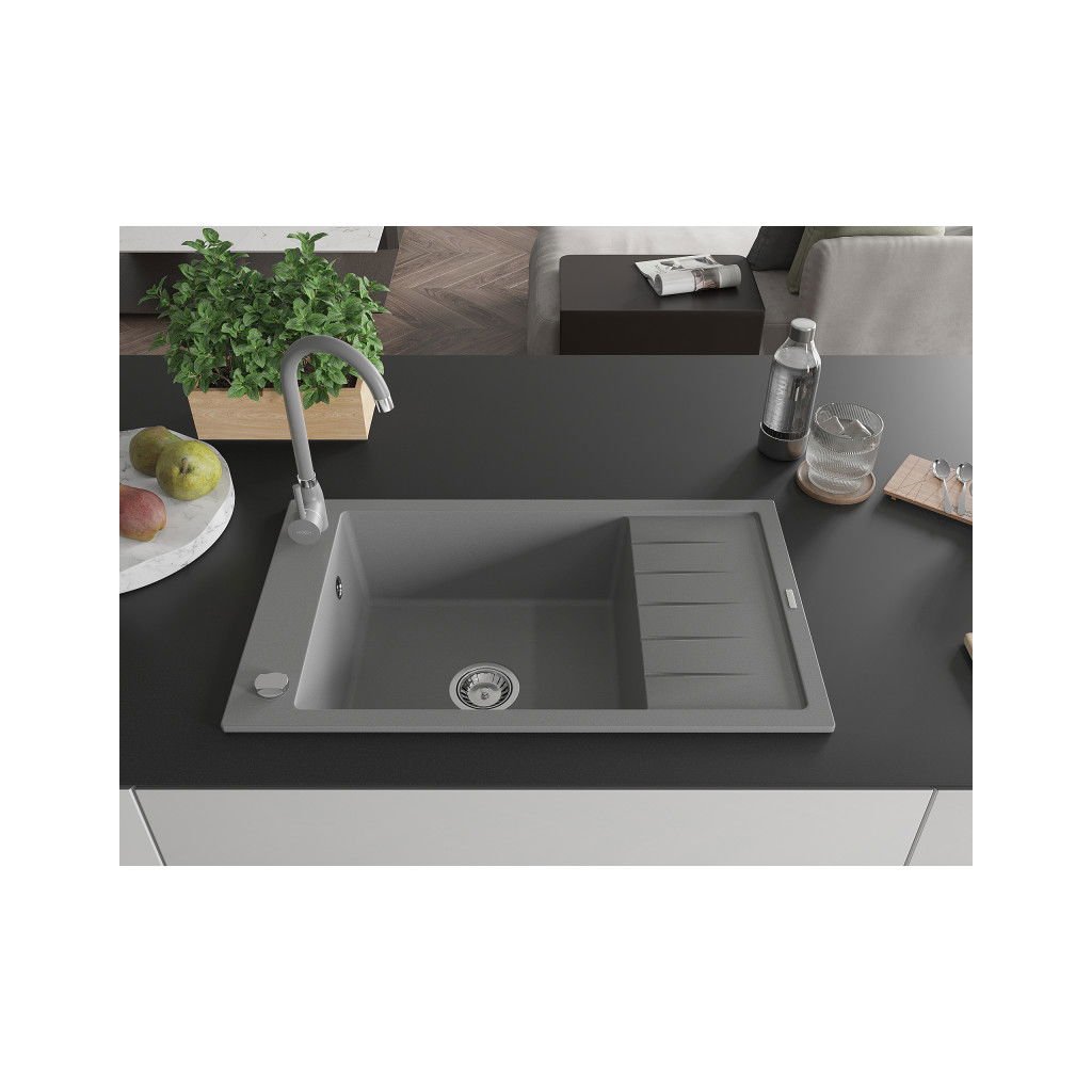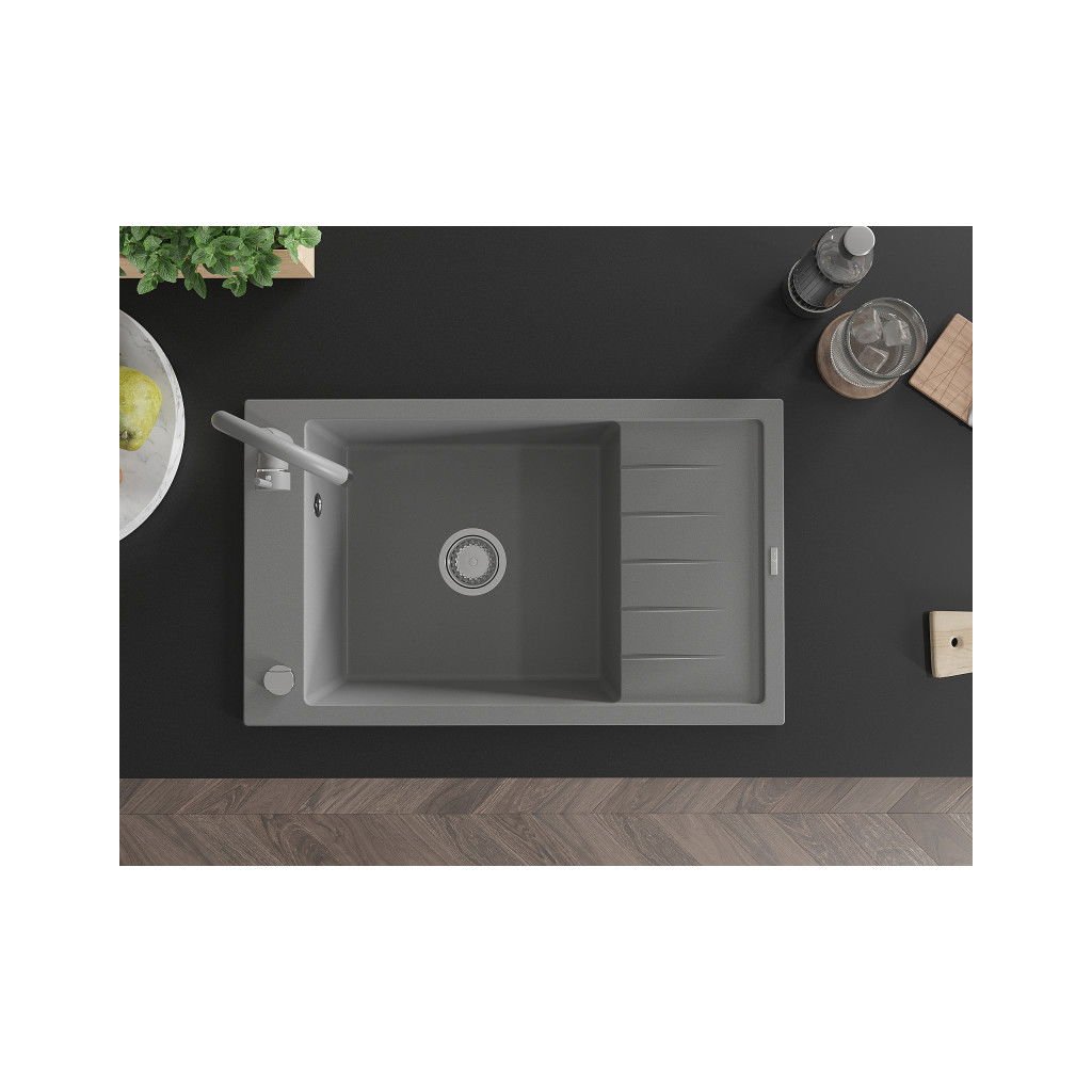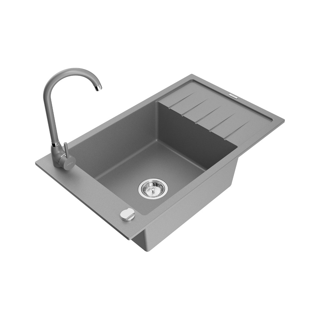 Mexen Elias, 1-komorový granitový dřez s odkapávačem 80x48 cm a kuchyňskou baterií Telma, šedá, 6511-71-670200-71
