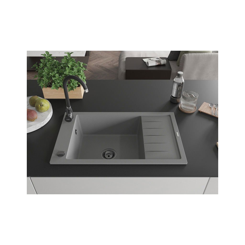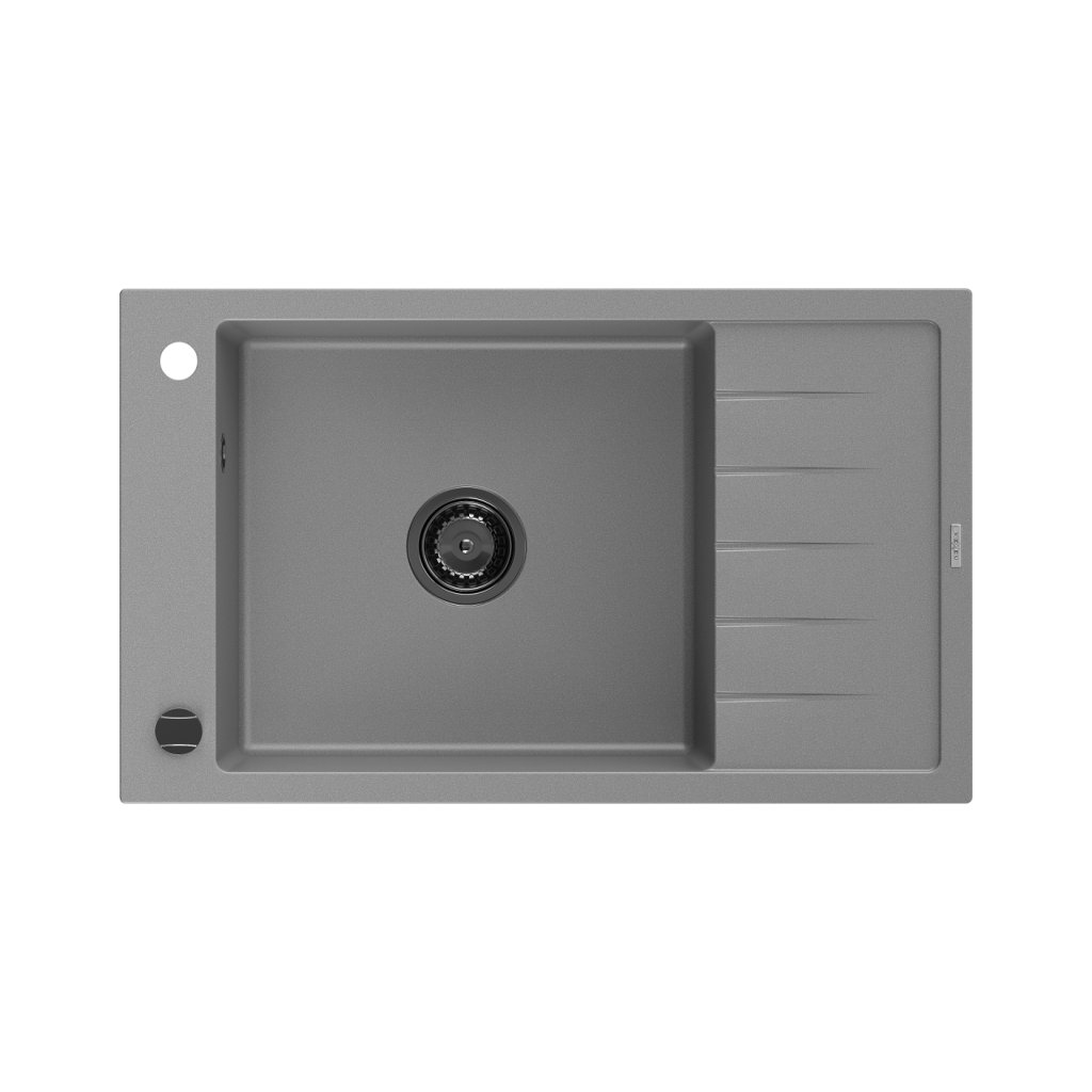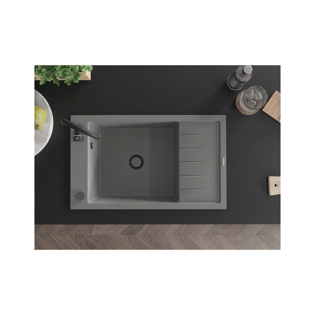 Mexen Elias, granitový dřez granitový 795x480x200 mm, 1-komorový, šedá s černým sifonem, 6511791005-71-B