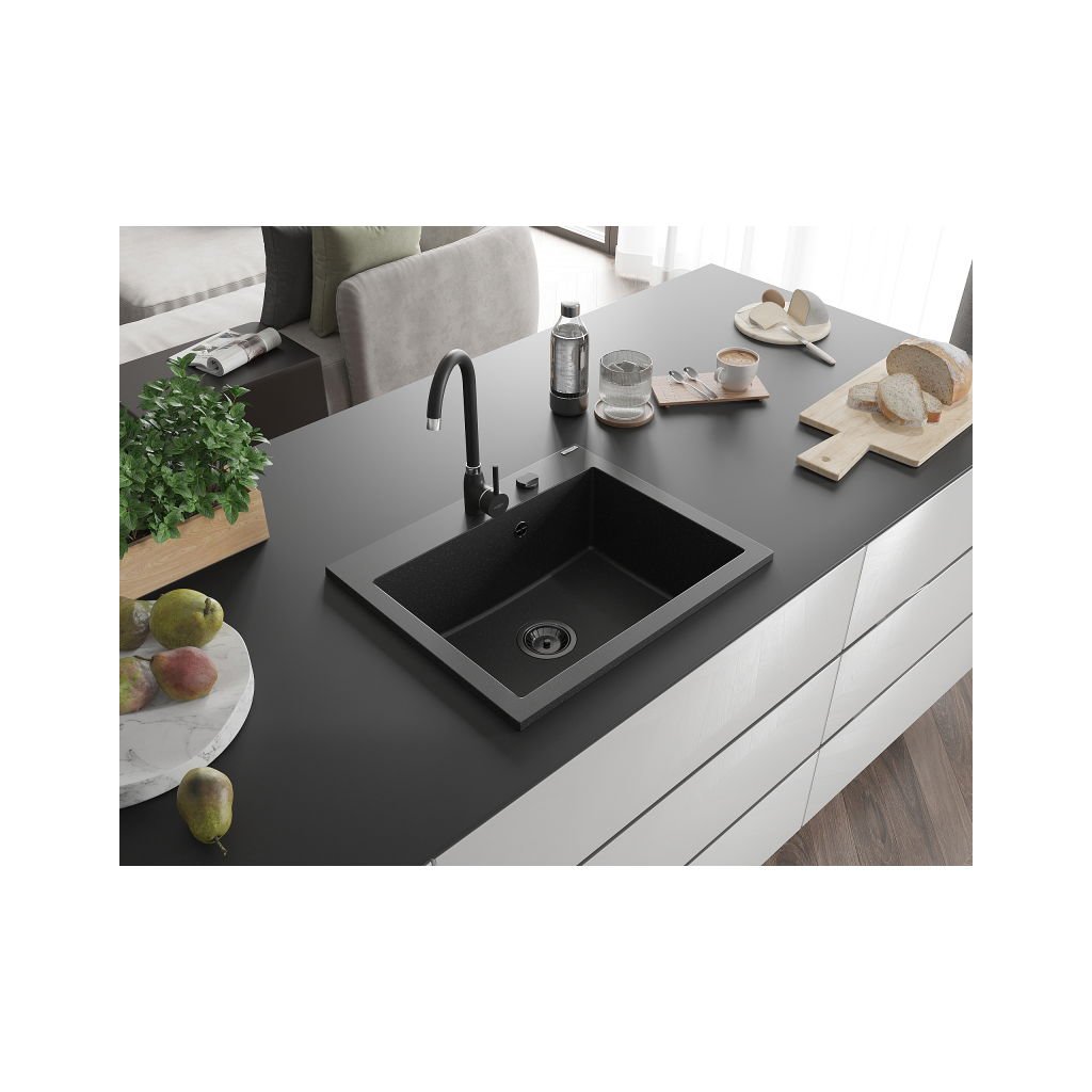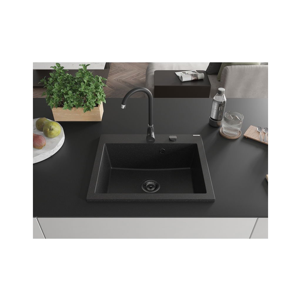 Mexen Elix, 1-komorový granitový dřez 600 x 500 mm, černá/stříbrná metalíza, černý sifon - 6525601005-73-B