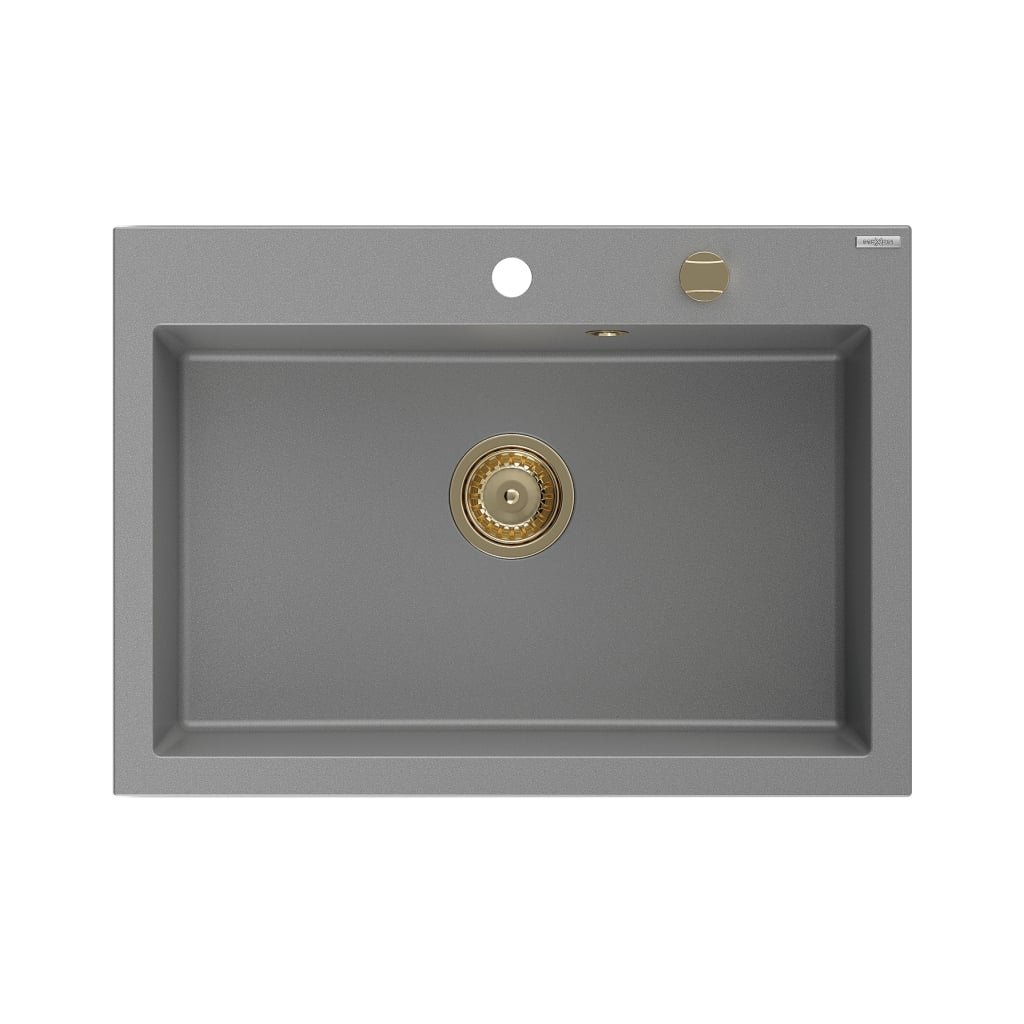 Mexen Elix, 1-korový granitový dřez 700 x 500 mm, šedá, zlatý sifon, 6526701005-71-G