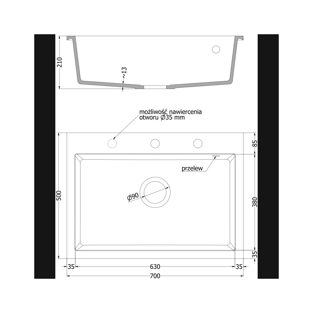 Jeden dodatečný zapuštěný otvor ø35 pro individuální vrtání