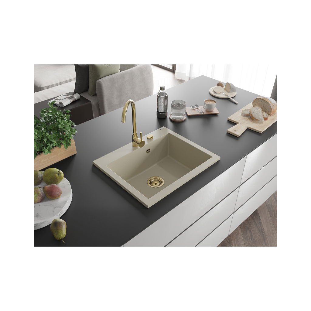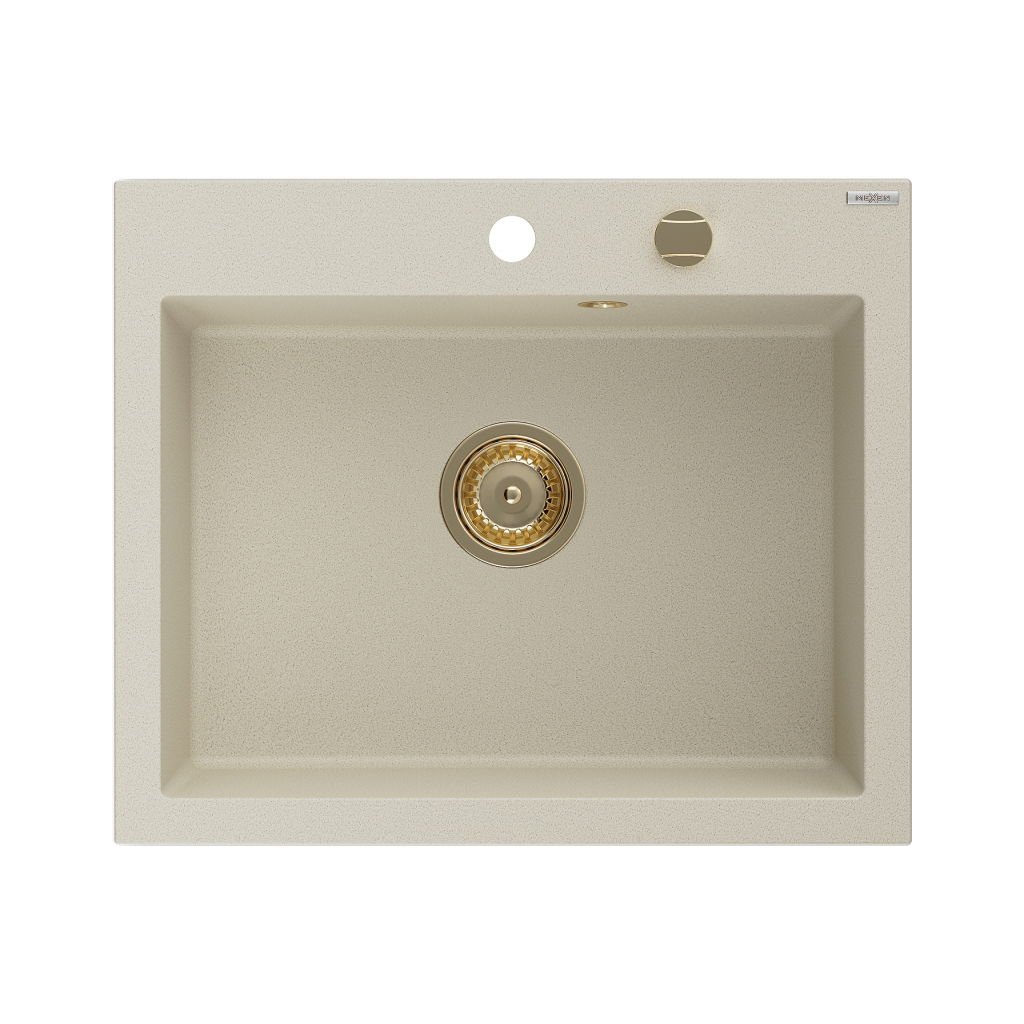 Mexen Elix, 1korový granitový dřez 600 x 500 mm, béžová, zlatý sifon, 6525601005-69-G