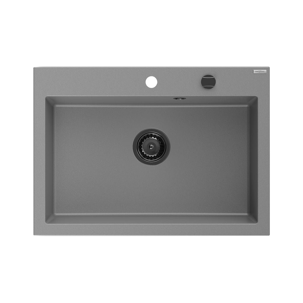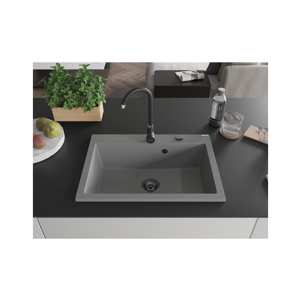 Mexen Elix, 1korový granitový dřez 700 x 500 mm, šedá, černý sifon, 6526701005-71-B