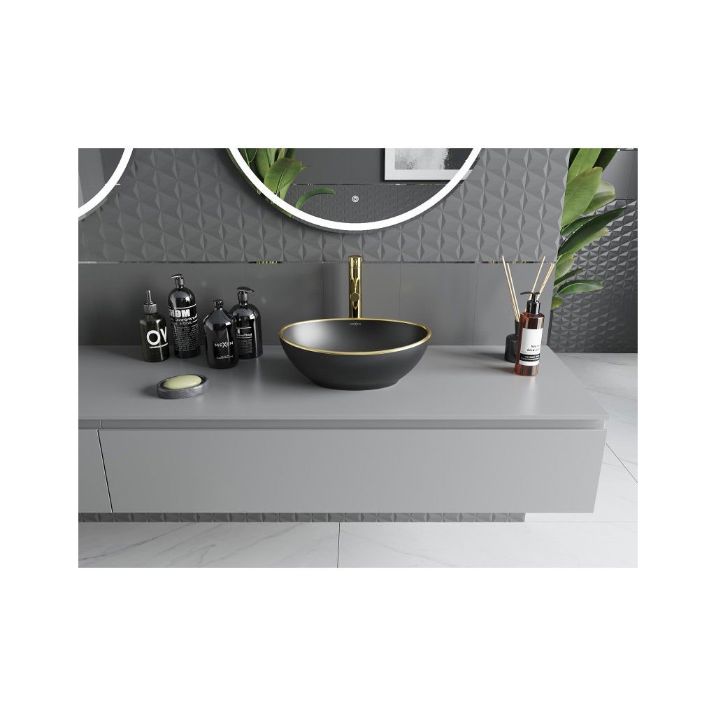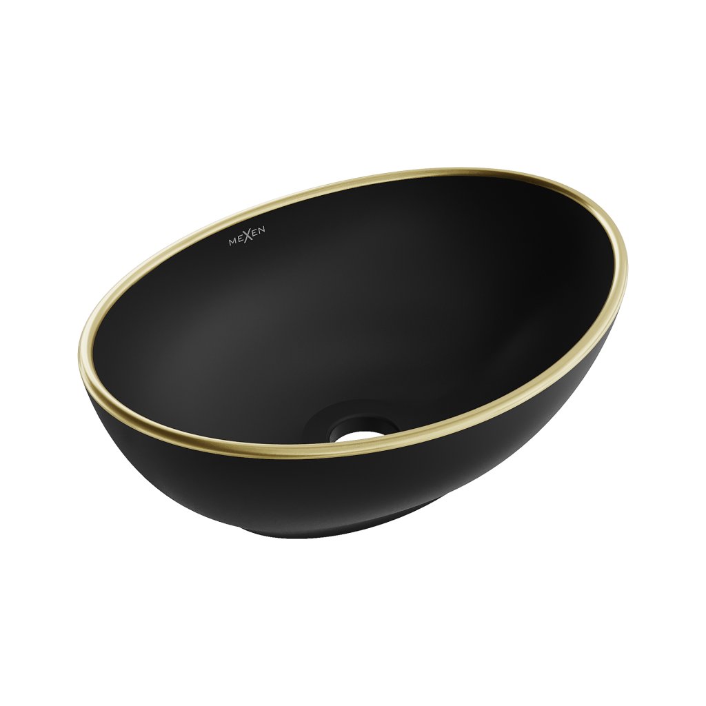 Mexen Elza, keramické umyvadlo na desku 405 x 330 mm, černá matná-zlatý okraj, 21014025