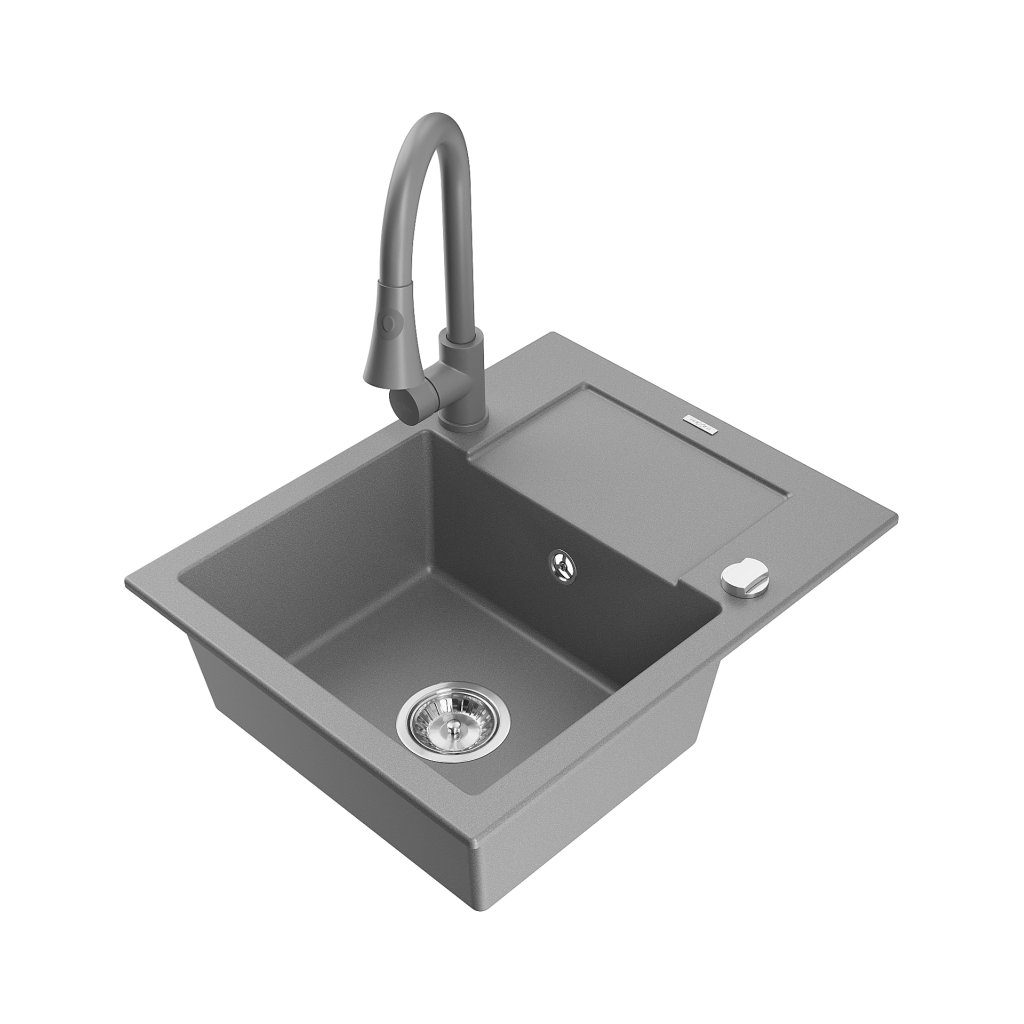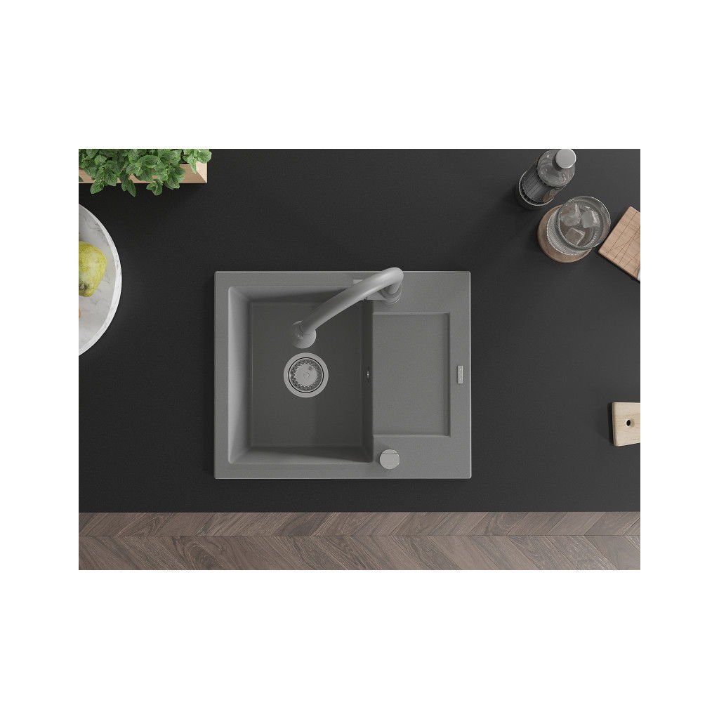 Mexen Enzo, 1-komorový granitový dřez 576x465x174 mm a dřezová baterie Elia, šedá, 6506-71-670101-71