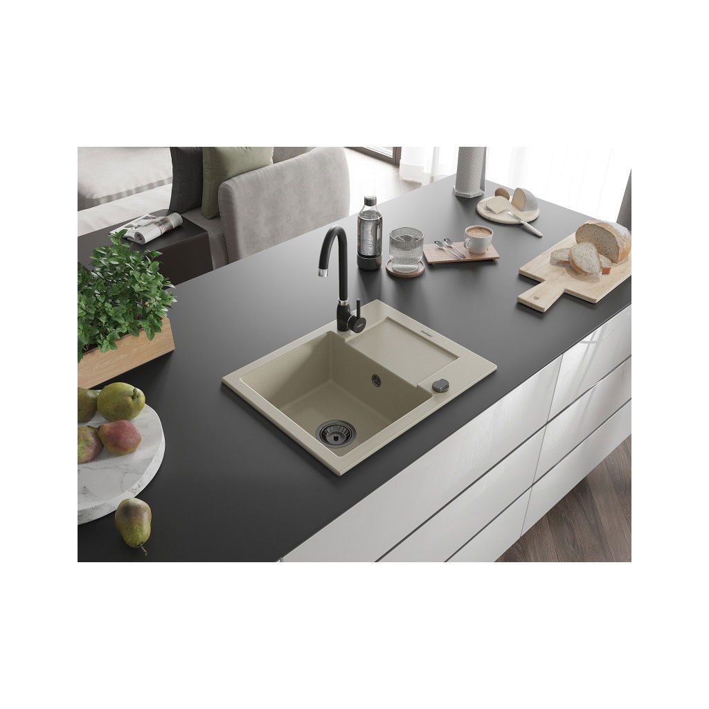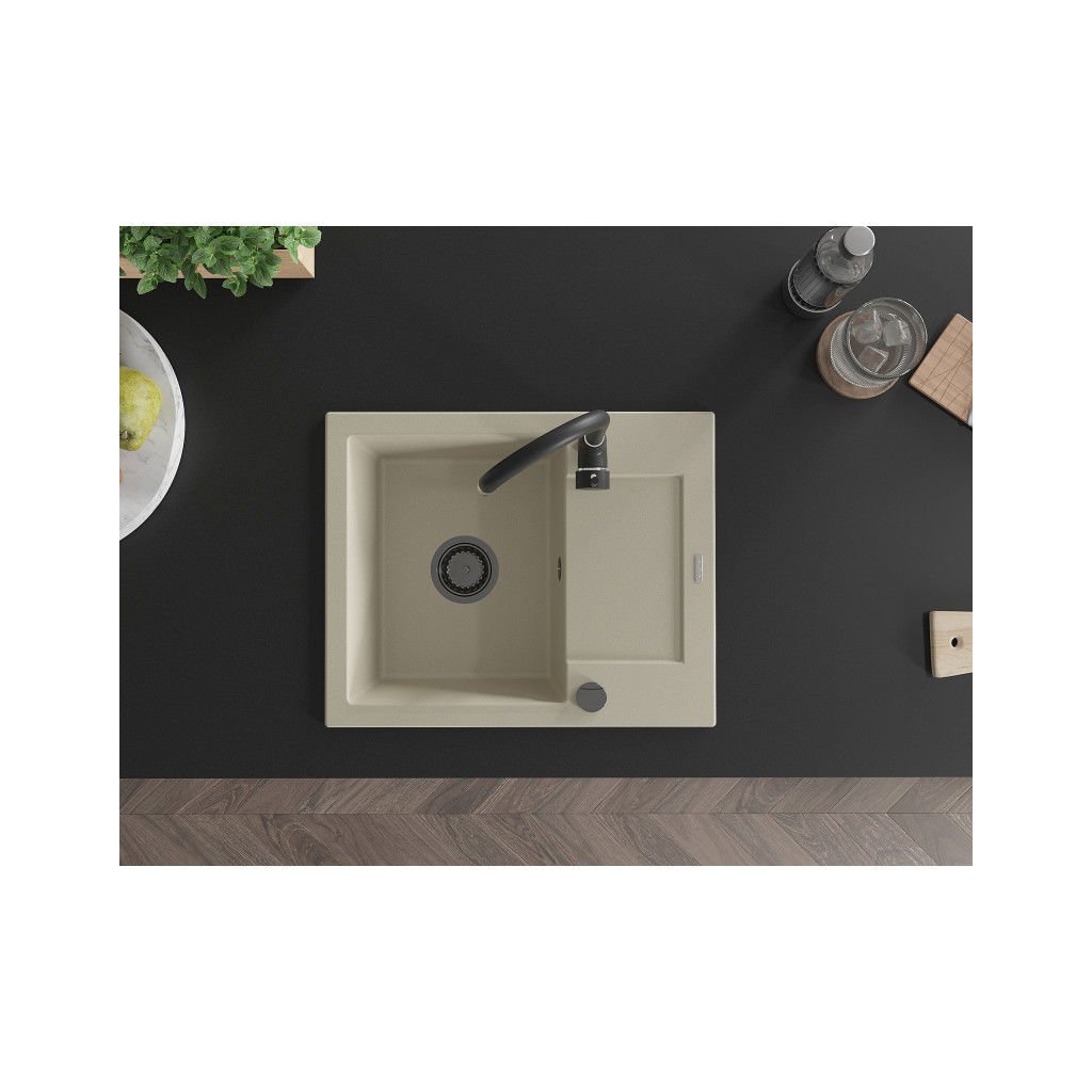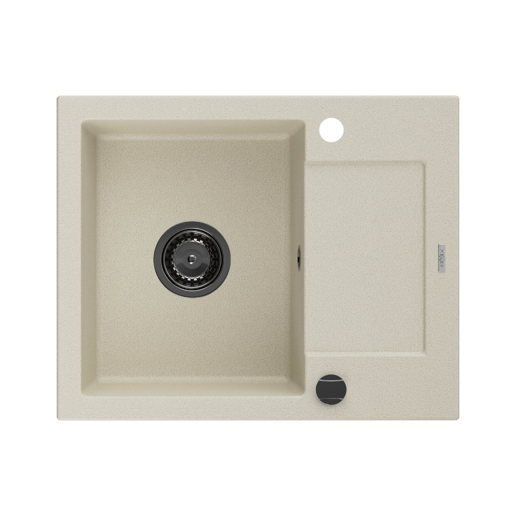 Mexen Enzo, granitový dřez 576x465x174 mm, 1-komorový, béžová s černým sifonem, 6506571005-69-B
