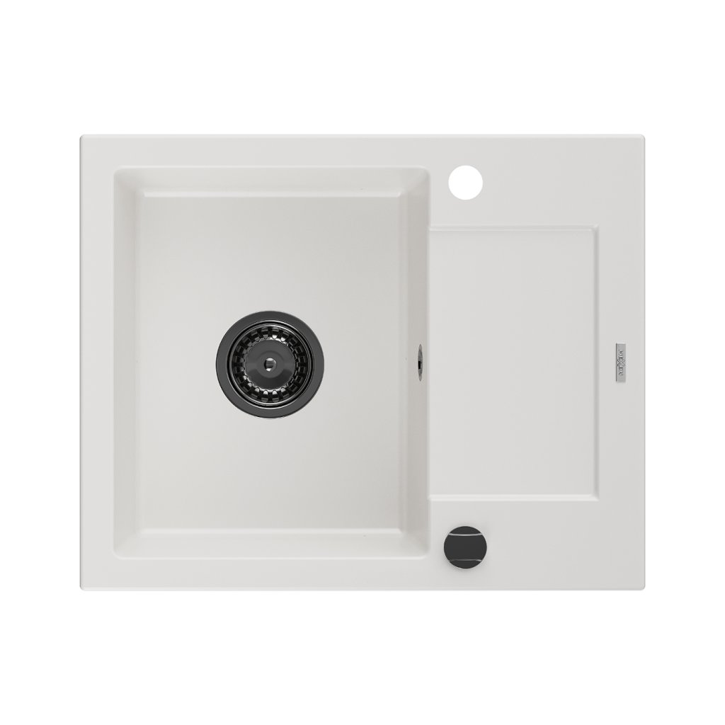 Mexen Enzo, granitový dřez 576x465x174 mm, 1-komorový, bílá s černým sifonem, 6506571005-20-B