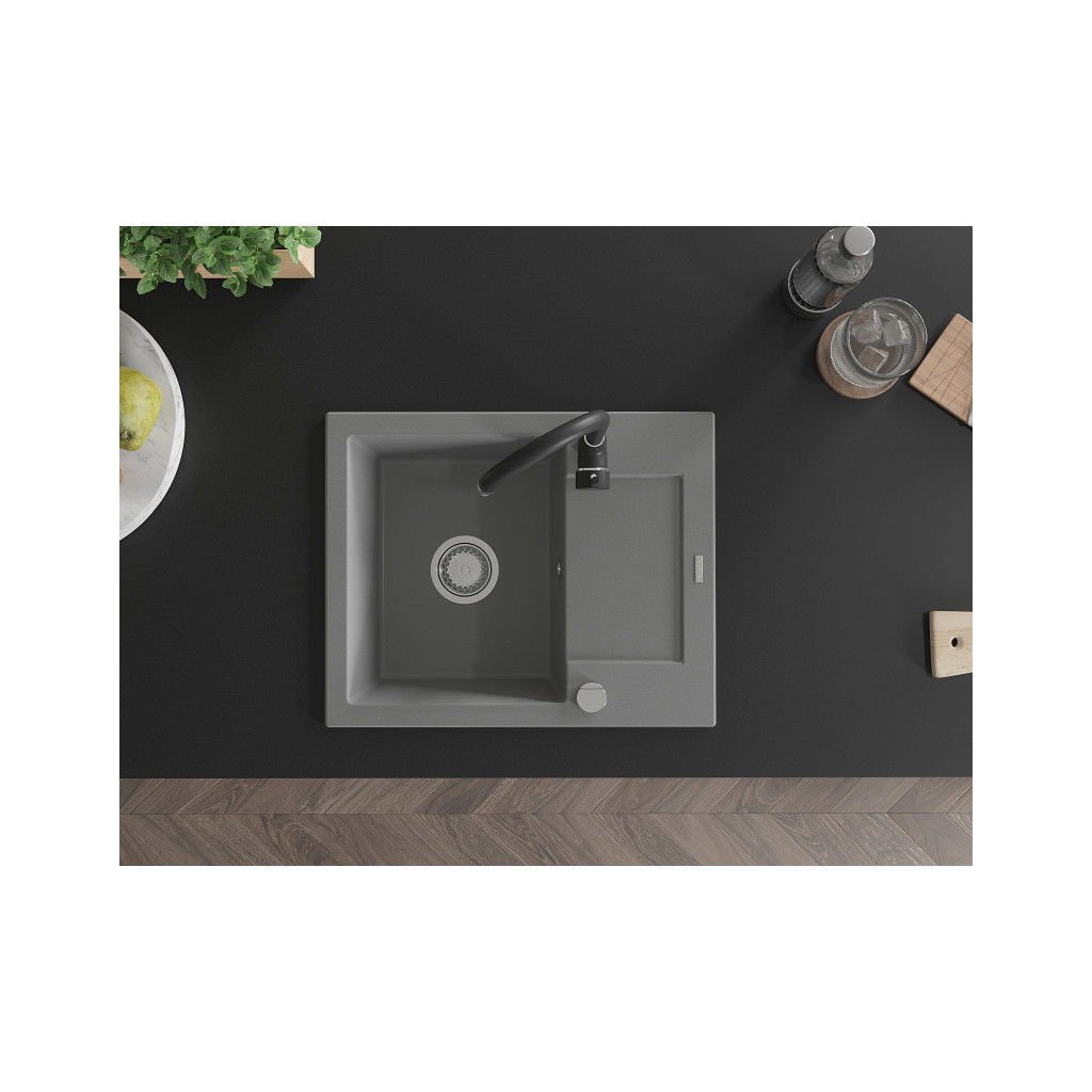 Mexen Enzo, granitový dřez 576x465x174 mm, 1-komorový, černá baterie Telma, šedá, 6506-71-670200-70