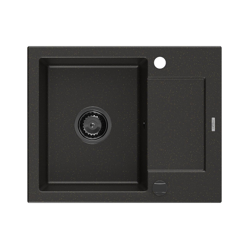 Mexen Enzo, granitový dřez 576x465x174 mm, 1-komorový, černá-zlatá metalíza s černým sifonem, 6506571005-75-B