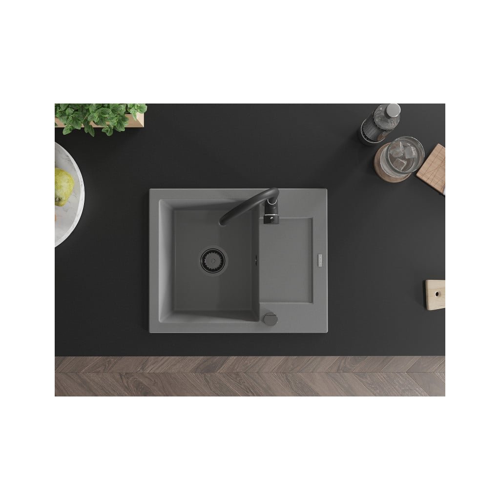 Mexen Enzo, granitový dřez 576x465x174 mm, 1-komorový, šedá s černým sifonem, 6506571005-71-B