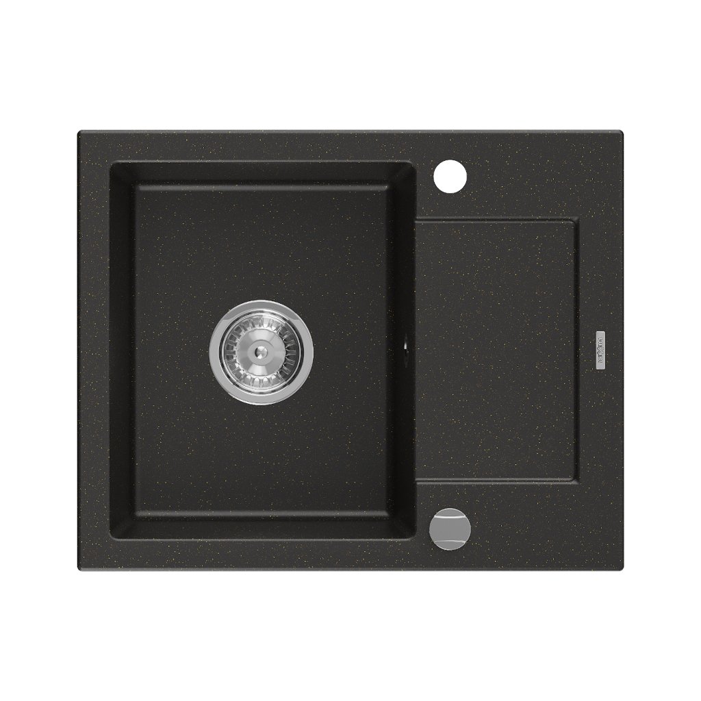 Mexen Enzo - dřez granitový 57,6x46,5cm, 1-komorový, černá-zlatá, 6506571005-75