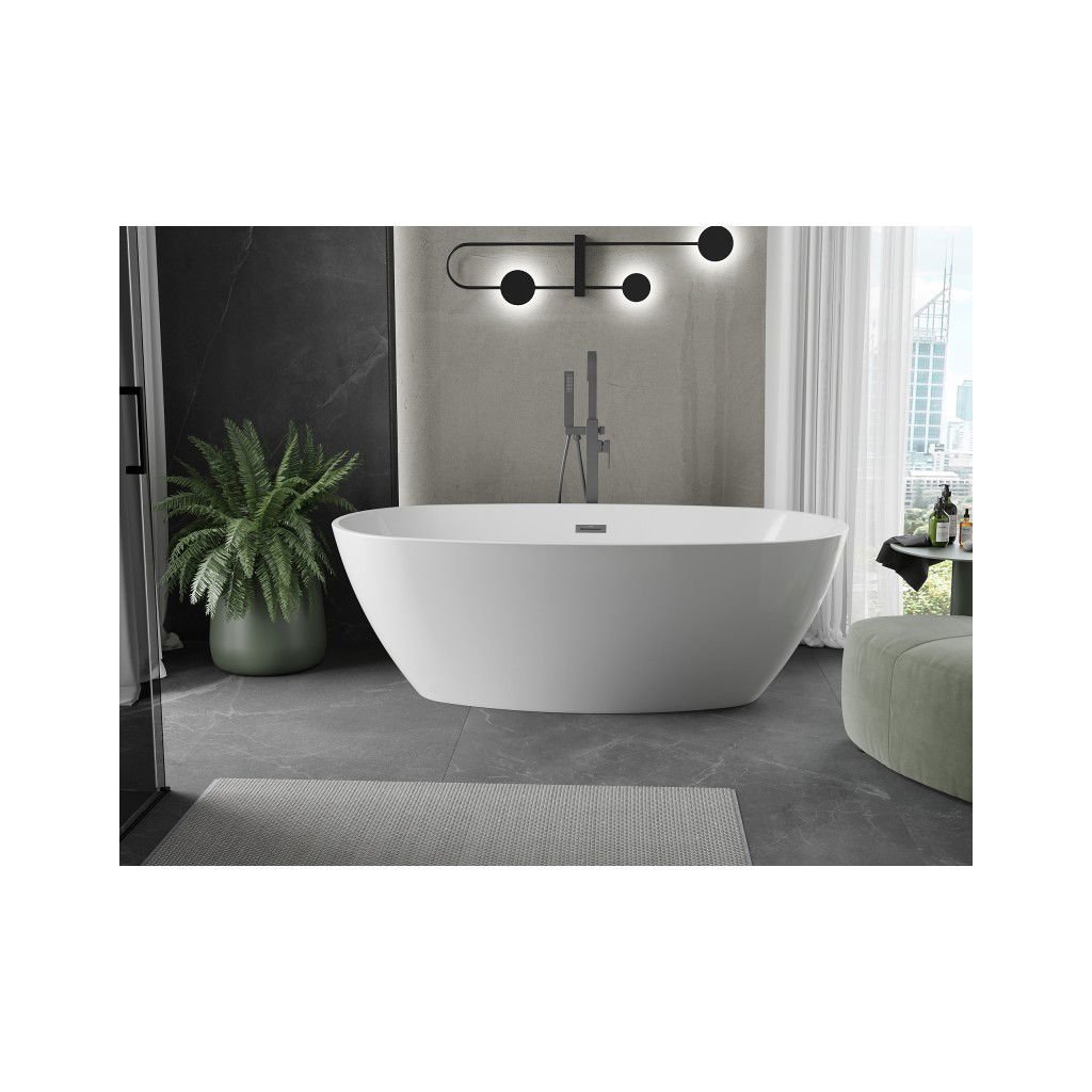 Mexen Eris, volně stojící vana 155 x 80 cm, bílá, broušený grafit přepad, 53441558000-95
