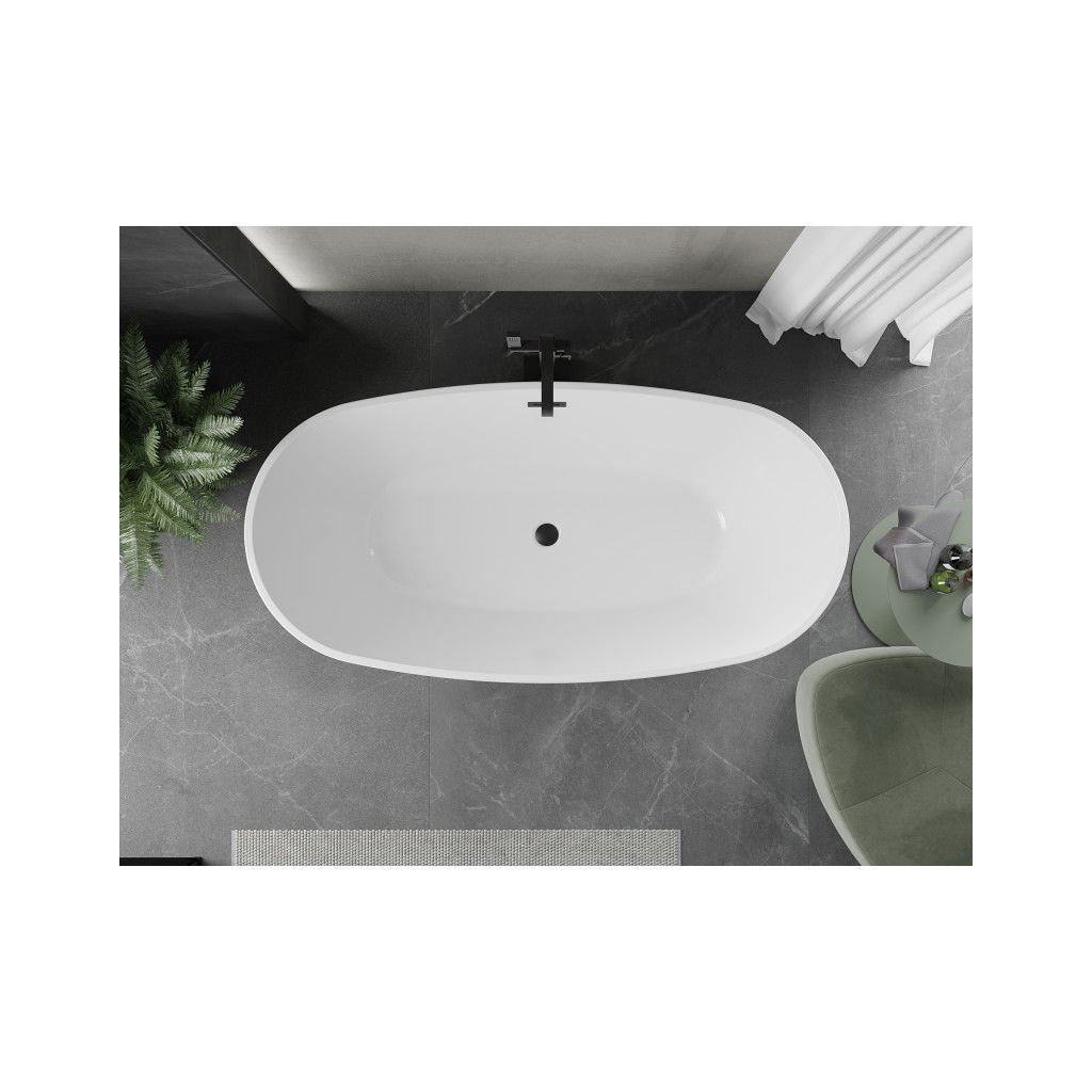 Mexen Eris, volně stojící vana 155 x 80 cm, bílá, černý matný přepad, 53441558000-70