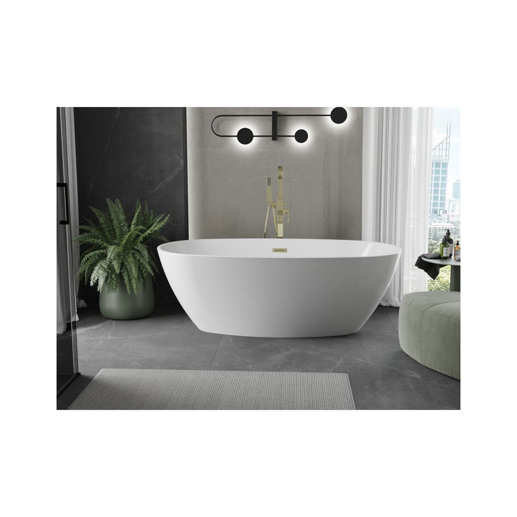 Mexen Eris, volně stojící vana 155 x 80 cm, bílá, zlatý matný přepad, 53441558000-55