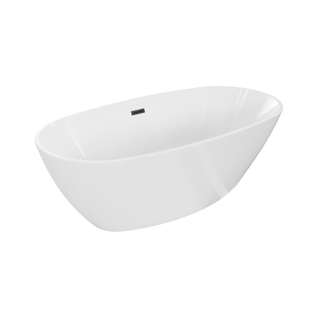 Mexen Eris, volně stojící vana 170 x 80 cm, bílá, černý přepad, 53441708000-70