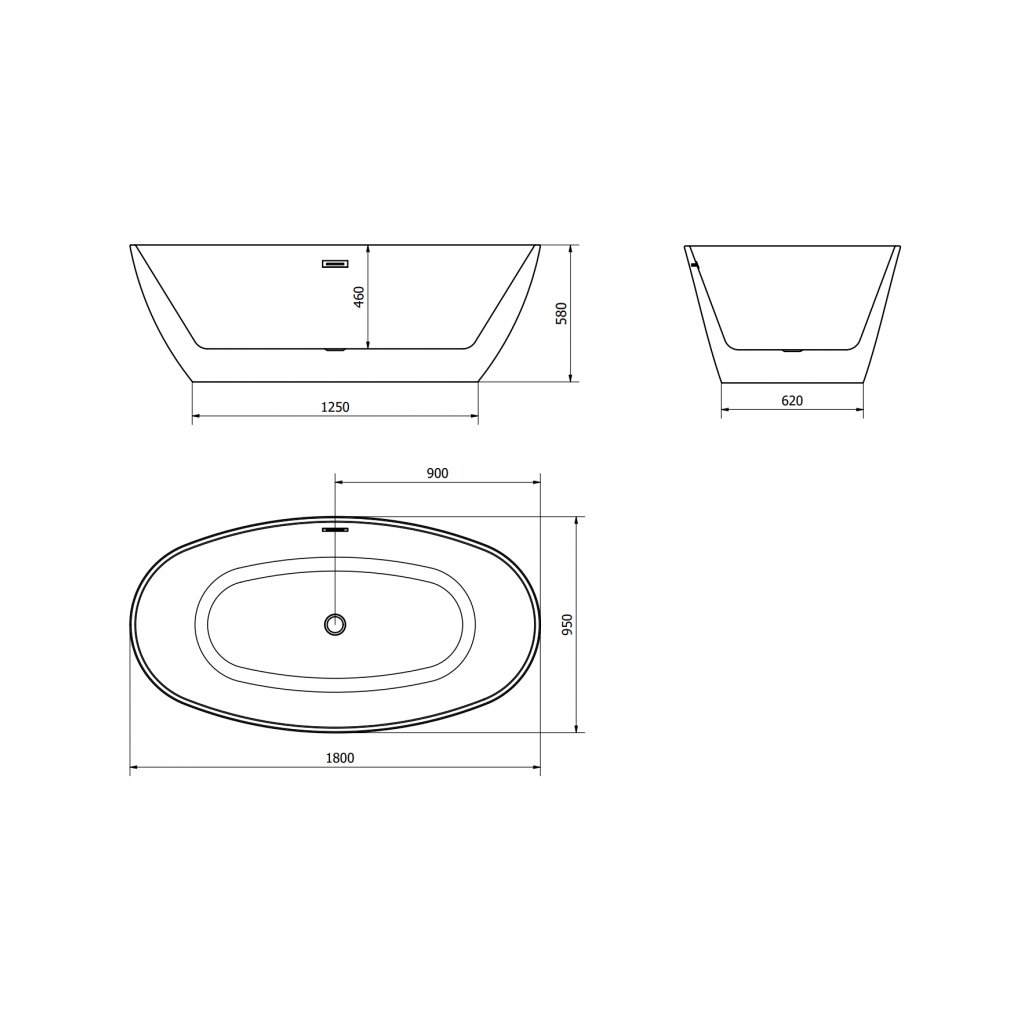 Mexen Eris, volně stojící vana 180 x 95 cm, bílá, broušený grafit, 53441809500-95