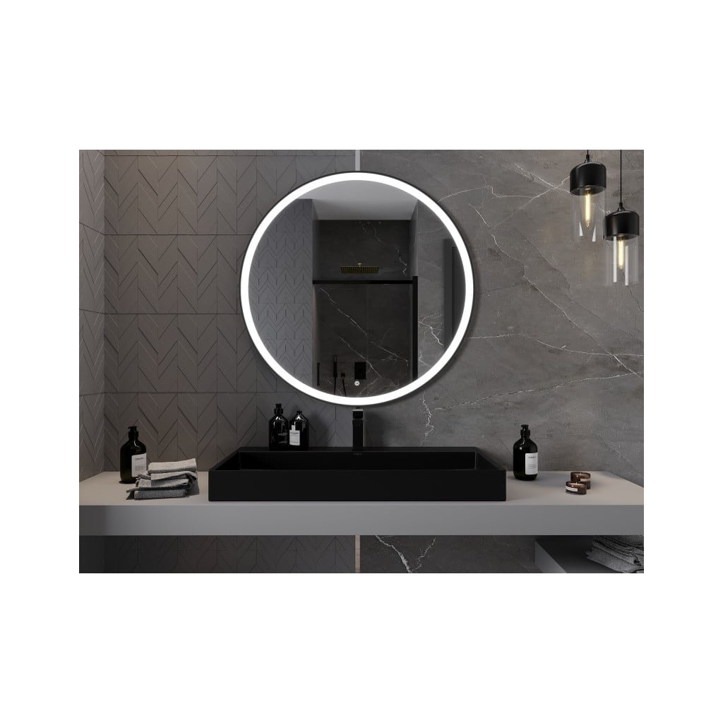 Mexen Esso, kulaté LED podsvícené koupelnové zrcadlo 100 cm, 6000K, topná podložka proti zamlžování, černý rám, 9825-100-100-611-70