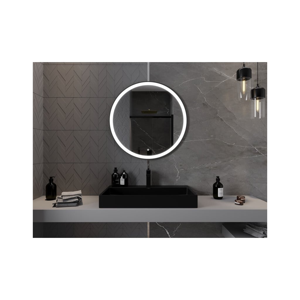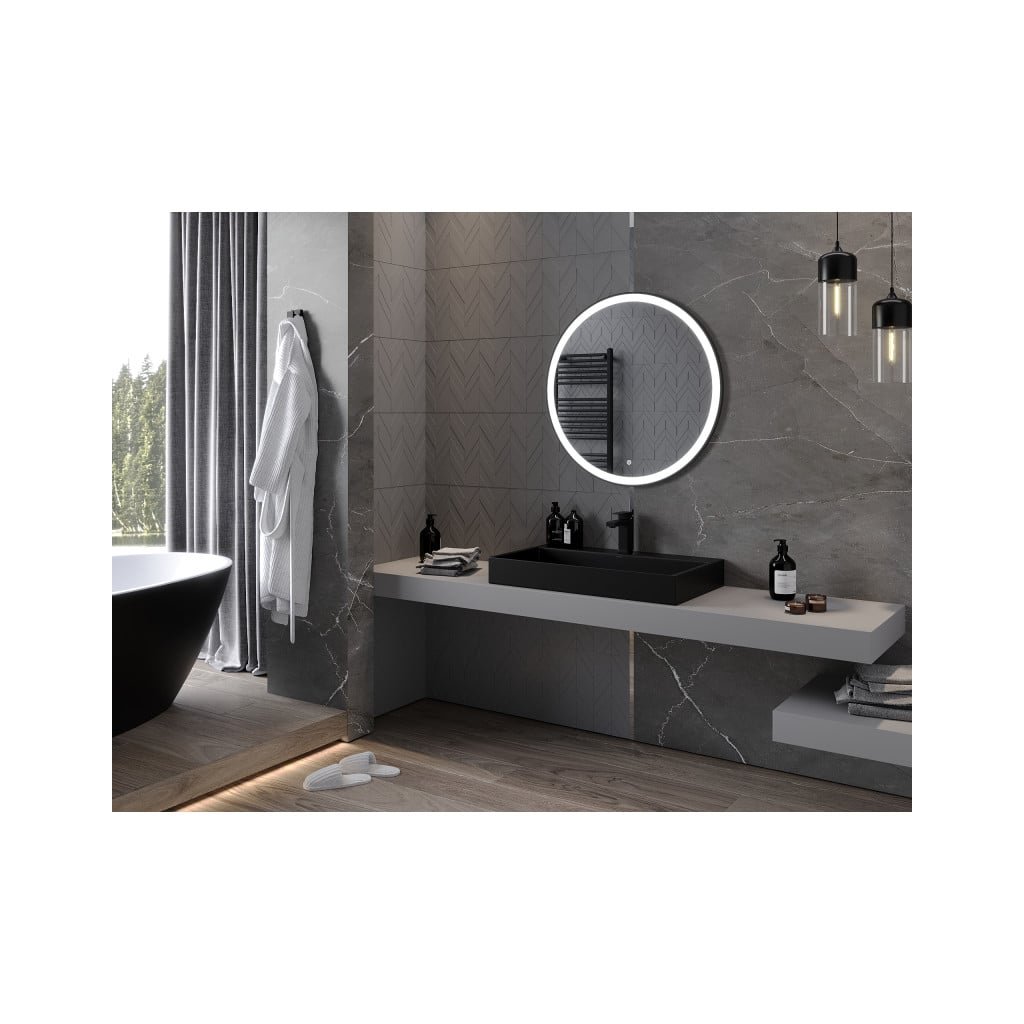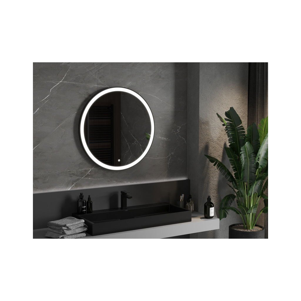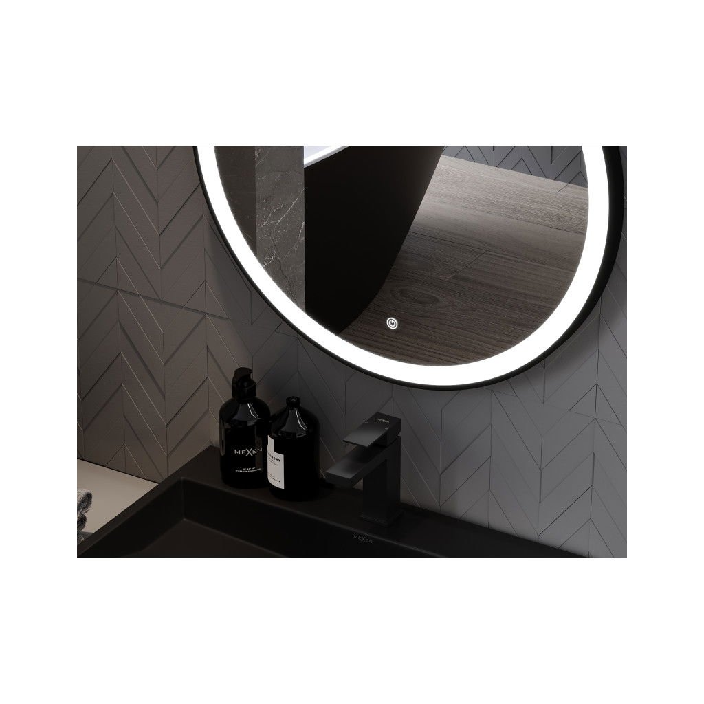 Mexen Esso, kulaté LED podsvícené koupelnové zrcadlo 80 cm, 6000K, topná podložka proti zamlžování, černý rám, 9825-080-080-611-70