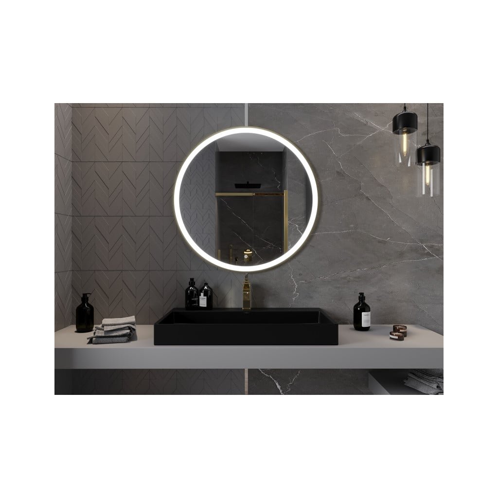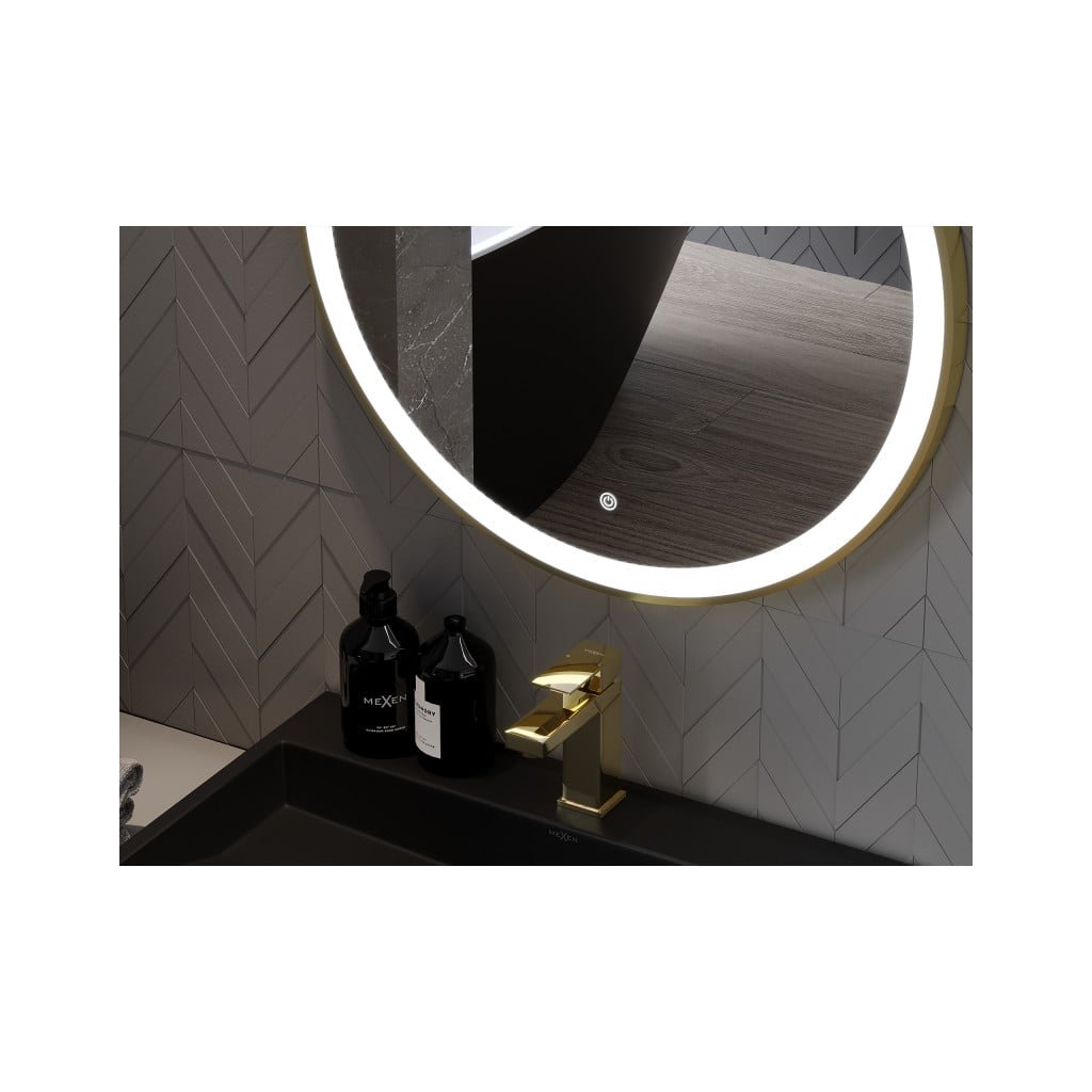 Mexen Esso, kulaté LED podsvícené koupelnové zrcadlo 90 cm, 6000K, topná podložka proti zamlžování, zlatý rám, 9825-090-090-611-50