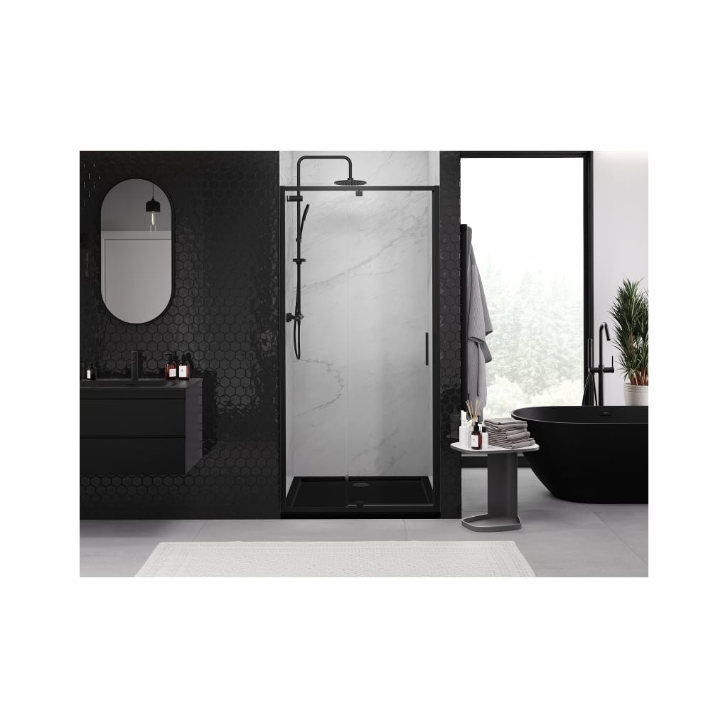 Mexen Exo, 1-křídlé dveře do otvoru 100x200 cm, 6mm čiré sklo, černý profil, 819-100-000-70-00
