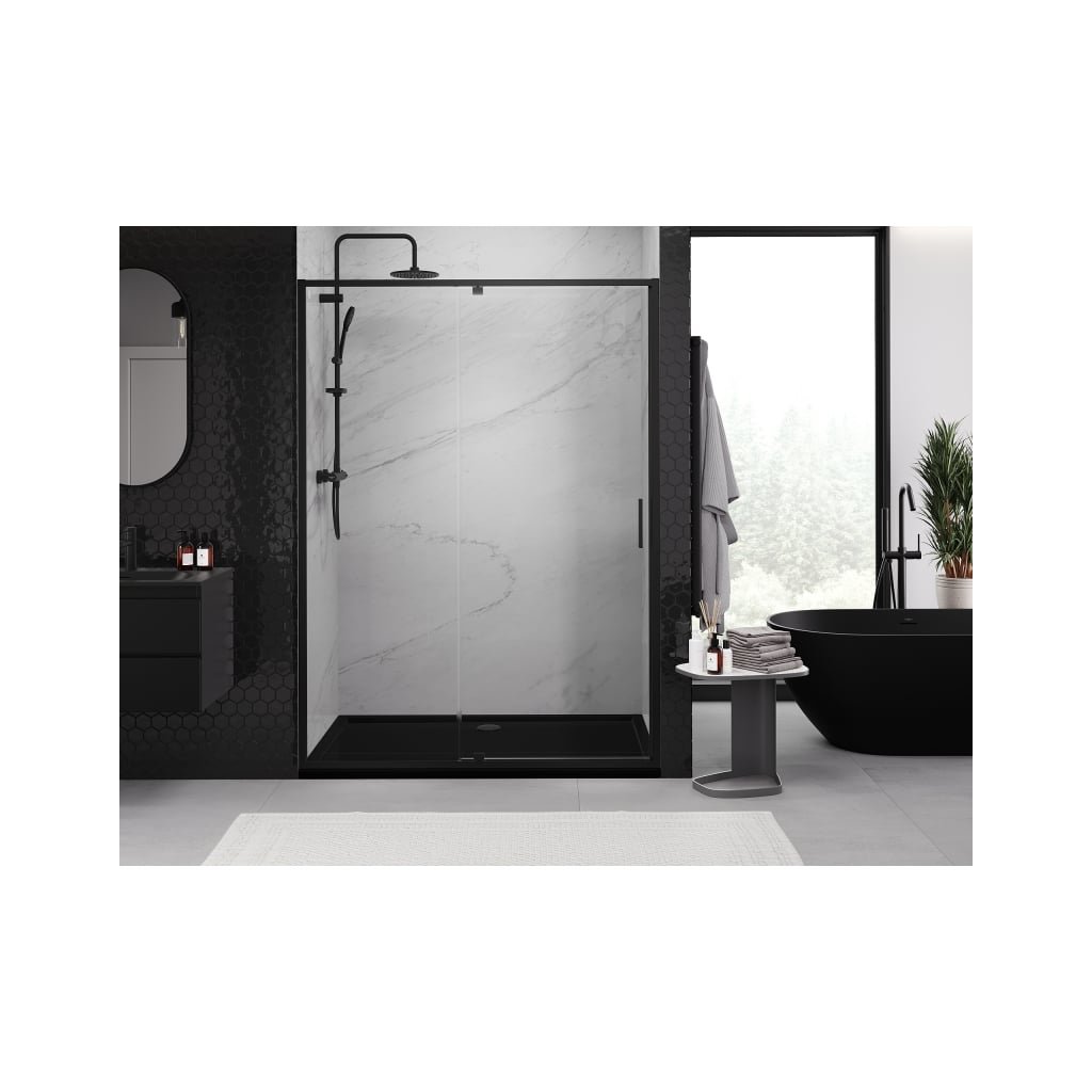 Mexen Exo, 1-křídlé dveře do otvoru 160x200 cm, 6mm čiré sklo, černý profil, 819-160-000-70-00