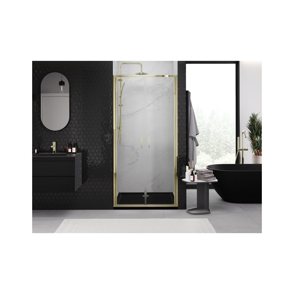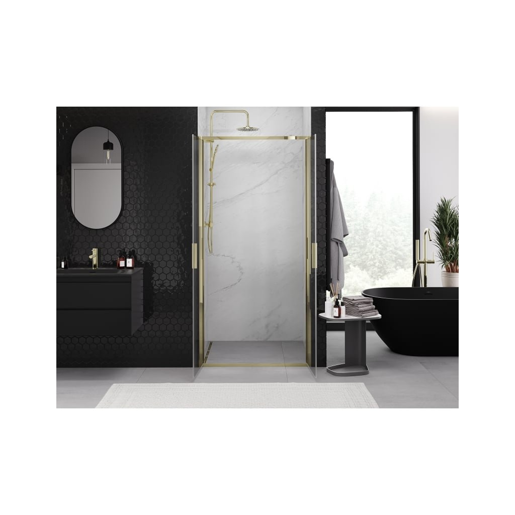Mexen Exo, dvojité výklopné sprchové dveře 80 cm, čiré sklo, zlatá, 814-080-000-50-00