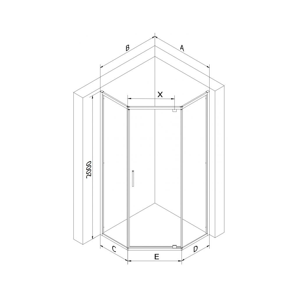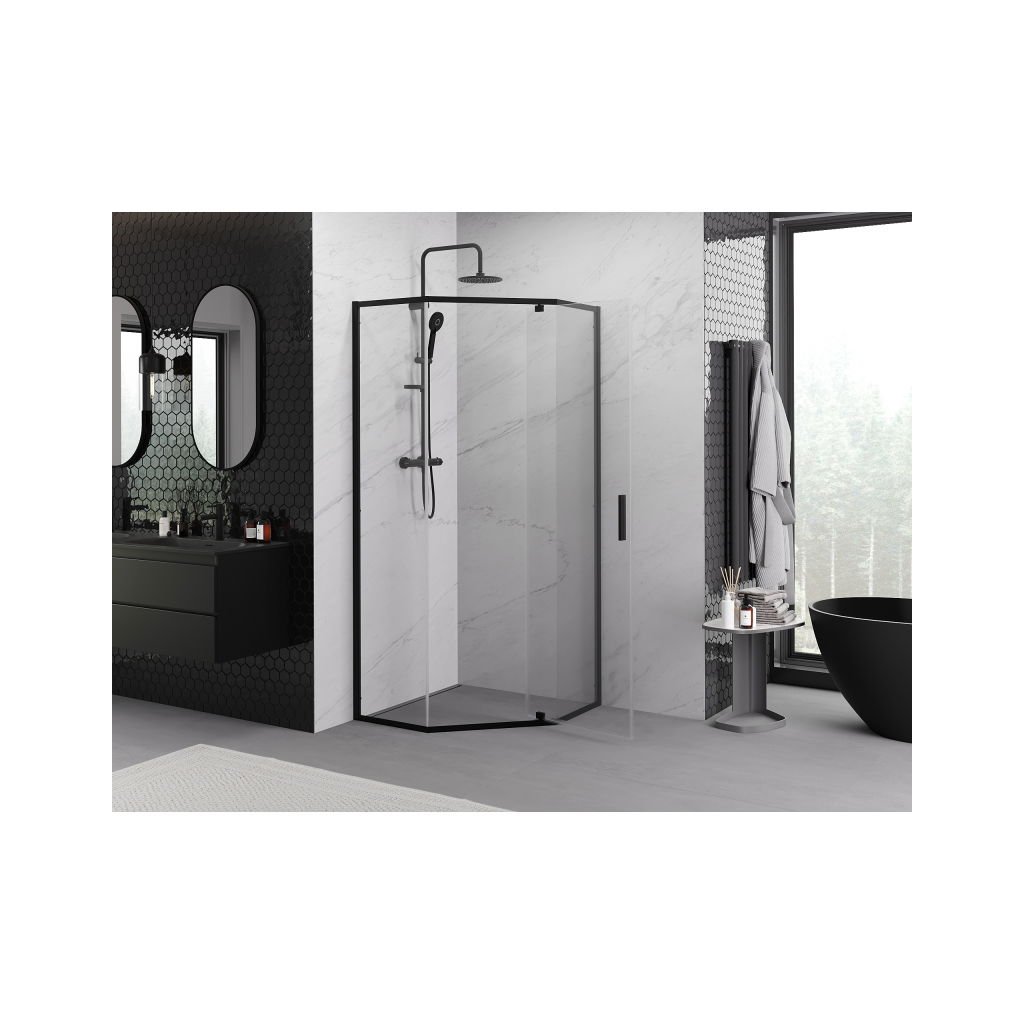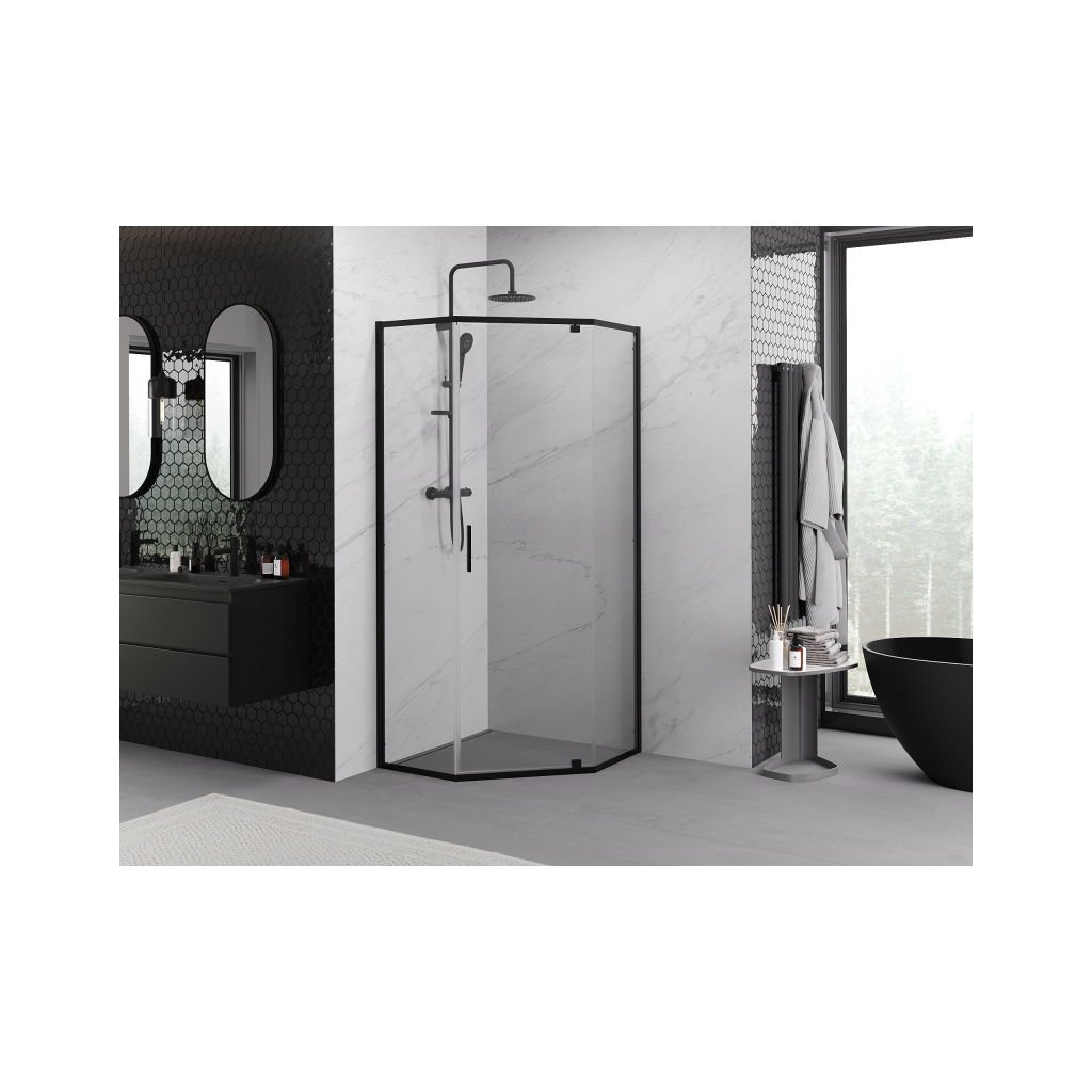 Mexen Exo, pětiúhelníkový sprchový kout s výklopnými dveřmi 100 x 100 cm, 6mm čiré sklo, černý profil, 812-100-100-70-00