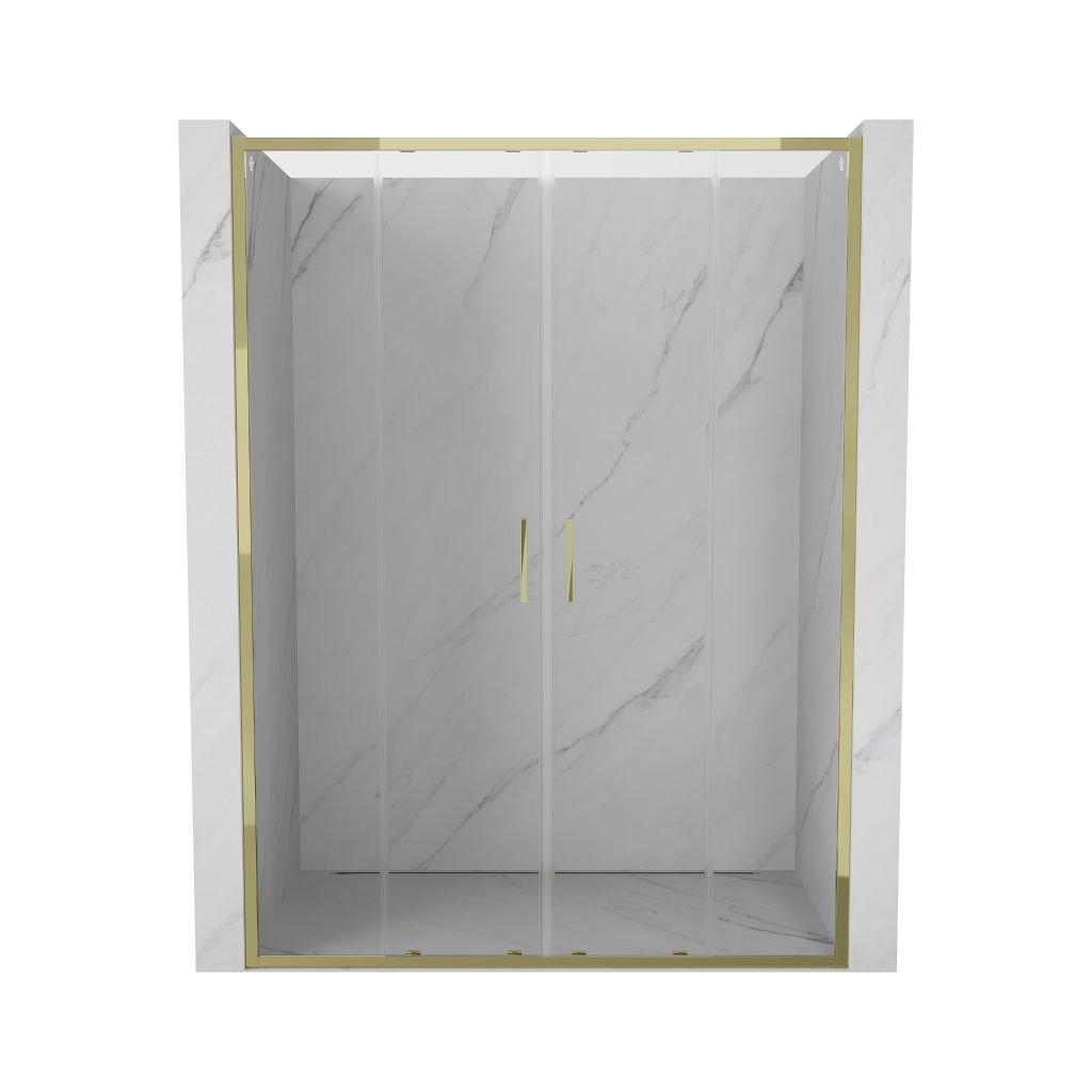 Mexen Exo, posuvné dvojité sprchové dveře 150 cm, čiré sklo, zlatá, 8152-150-000-50-00