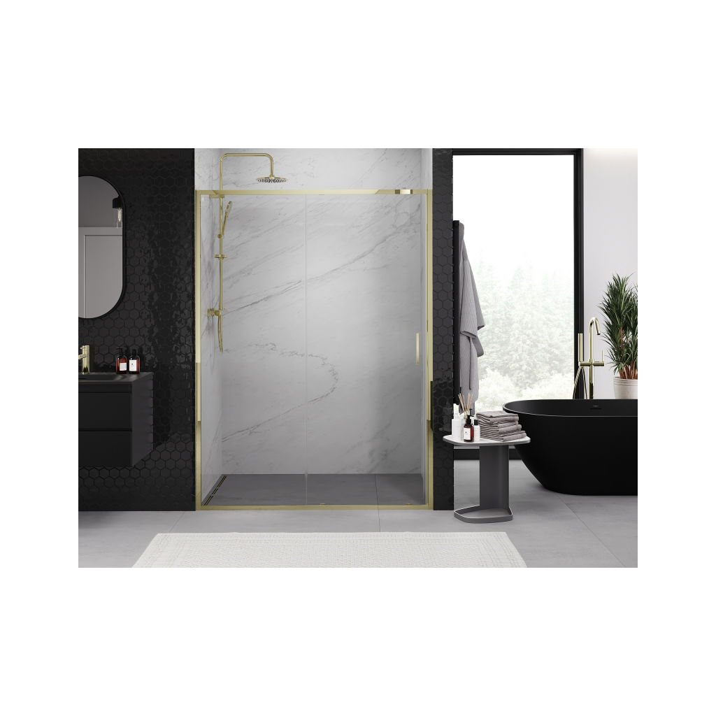 Mexen Exo, posuvné sprchové dveře 130 cm, čiré sklo, zlatá, 8151-130-000-50-00